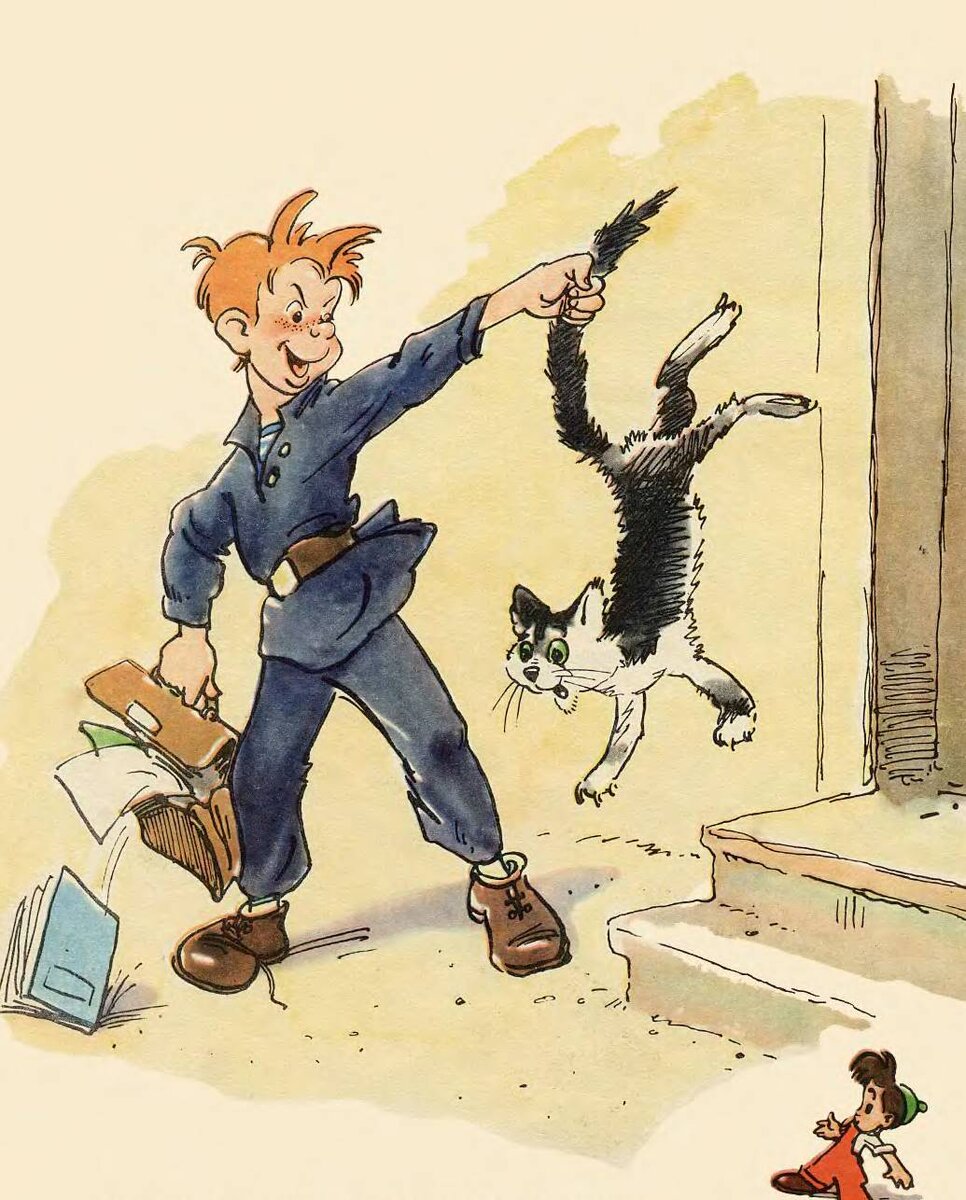 Вот один пример из моего детского жизненного опыта. Выхожу я как-то погулять на улицу и вдруг мне дорогу пересекает бегущая с безумными кошка, а за ней с такими же безумными глазами бежит кот. К хвостам обеих животных привязаны пустые консервные банки. Они своим грохотом об асфальт пугают котиков, и они убегает от шума. Следом за котами бегут два пацана из одного старшего класса и улюлюкают от радости. Такое действие мне не понравилось, за что пацаны тут же получили увесистых ударов по пятой точке! Это были не те пацаны, которые дадут сдачи. В общем пацаны убежали, а я довольный пошёл в школу.