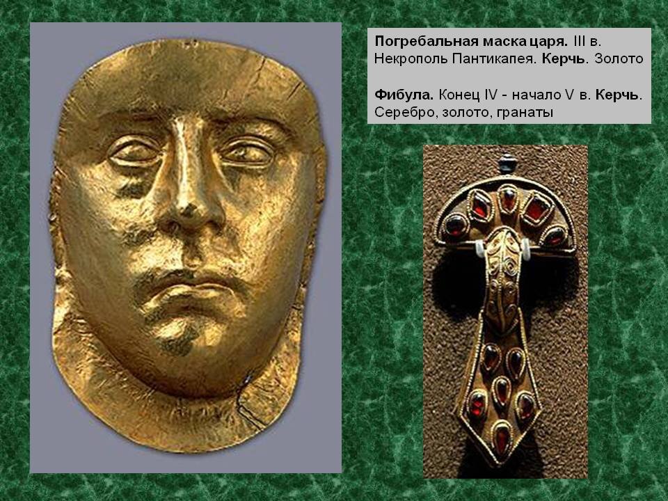 В коллекции Государственного Эрмитажа хранится всего три золотые маски, относящиеся к разному времени, хотя и найденные относительно недалеко друг от друга. Самой замечательной из них, без всякого сомнения, является маска из так называемой гробницы Рескупорида.