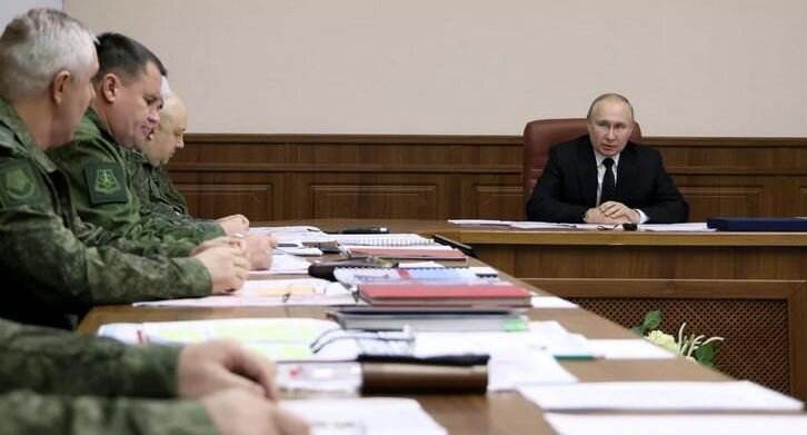 Плакат в штабе Южного военного округа отреагировал на появление Путина и Шойгу