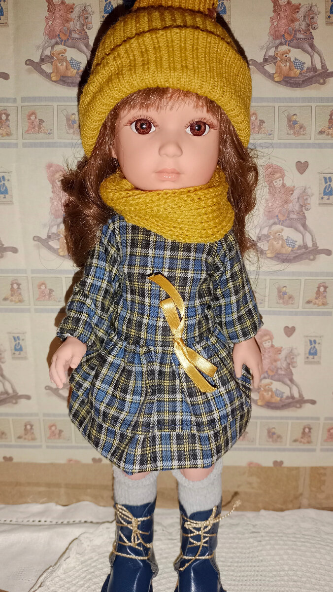 Давно присматриваюсь к этой куколке. И чего только ни прочитала о ней. И то, что она безлика, копия и Дельнорочек и своей тёзки Карлоты от Вестида де Азул. Но, конечно, не купив и не сравнив, правды не выяснить. Сначала я присматривалась к мальчику этой серии. Кукла заявлена как 36 см, значит, должна быть выше даже моих самых больших девочек Видал Рохас 35 см. Но потом всё-таки решила заказать девочку. Уж очень понравился нарядик, а из девочки сделать мальчика проще, чем наоборот. И вот что я увидела. 36 см куколка, видимо, с помпоном от шапочки, а на деле она около 34 см - как подружки Паолочки. Только по сравнению с ними она более основательная и крепко сбитая. Винил тоже значительно темнее. Решила сравнить ее с Эстель. Ну, что могу тут сказать. Они в чем-то похожи, но в целом - совершенно разные девочки. Карлота задумчивая и ушедшая в себя, а Эстель открытая и позитивная. Но как подружки отлично смотрятся. Решила сравнить ее с Карлотой от Вестида. Получается, что они даже не сес