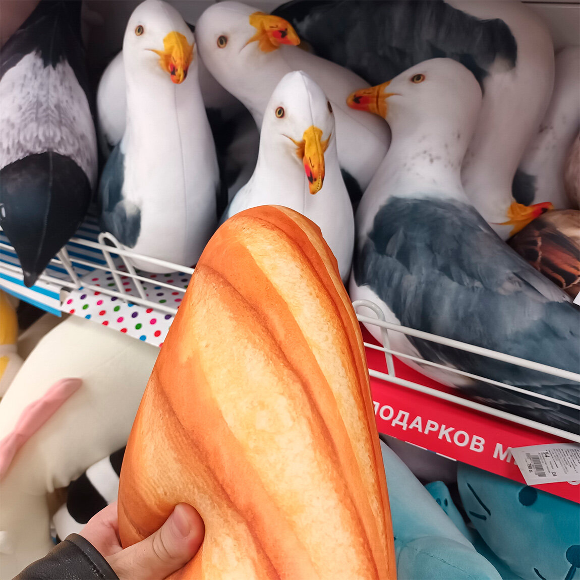В магазине лежит батон. Воздушен и мягок он. Зажарист на вид и румян. Имеет один изъян. Он несъедобен. Батон. Просто подушка он. Мягкая. Можно спать. Птицы не будут клевать. Птицам его предлагал. К клювам батон пихал. Птицы батон не ели. Видимо, не сумели. Птицы — подушки тоже. Подушек кормить негоже. Кормить надо птиц живых, Если искать таких. Много на свете птиц. Уток, чаек, синиц. Разного оперения. Разного поведения. Птицы, бывают, нравятся. Бывает, совсем не нравятся. Не повод их всех истреблять И в “КРАСНУЮ КНИГУ” вгонять, Чтоб просто исчез их вид. Пускай просто летит. Я не купил батон. Был мне не нужен он. Птицы его не съели. Видимо, не хотели. Не буду их осуждать. Это ведь им решать. Автор стихотворения Олег Черкалин