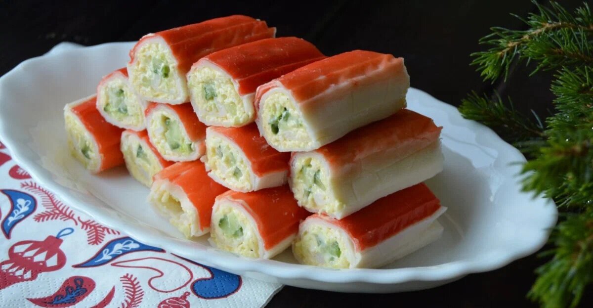 Этот рецепт очень легок и прост, и многие хозяйки его уже, наверное, использовали. Но для меня это первый опыт приготовление подобных рулетиков. Рулетики получились вкусные, с благоуханием чесночного аромата, который вызывает аппетит. Продукты: Крабовые палочки - 1 упаковка. Яйца куриные - 2 шт. Сыр - 150 грамм. Зелень укропа. Майонез. Чеснок. Плавленый сырок натрите на мелкой терке. Отваренные яйца очистите и также натрите на мелкой терке. Укроп помойте и мелко порежьте. Сложите все ингредиенты в тарелку, приправьте чесноком, выдавленным через пресс. Добавьте майонез и перемешайте. Крабовую палочку аккуратно раскрутите и намажьте полученным салатом. Затем крабовую палочку заверните обратно и порежьте на маленькие роллы. Всем приятного аппетита!