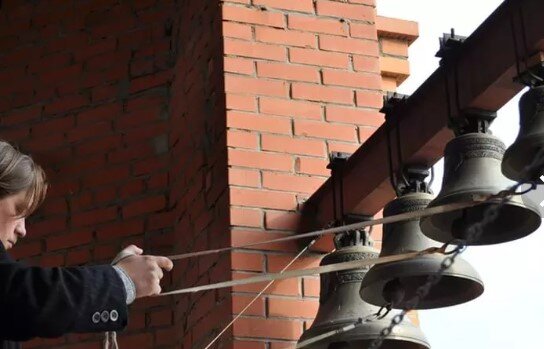 На службу пошли и дед, и обе бабушки, взяв с собой всех четверых. Всю службу конечно выстоять они не могли, поэтому постоянно выбегали на улицу и смотрели на колокольню. И вот, наконец, все жители села и они тоже услышали колокольный звон .