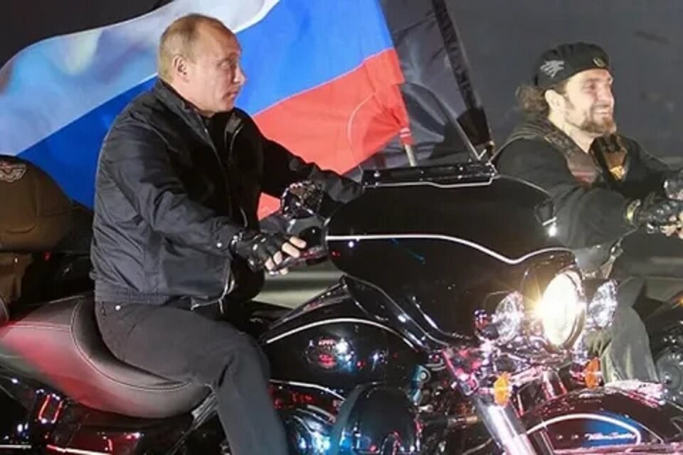 Путин в куртке-косухе приехал на мотослет на мотоцикле Harley-Davidson Lehman Trike и возглавил колонну байкеров. Мотоциклисты проехали по автомобильному кольцу Севастополя.