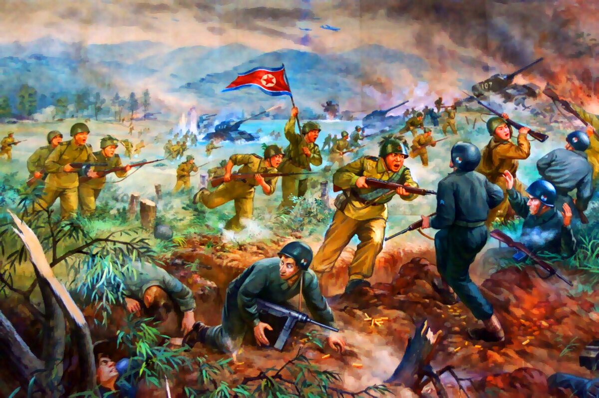 ! - (1950-1953 гг.) Самое трагическое событие в корейской истории ХХ века – это Корейская война, длившаяся с 1950 по 1953 год. Это было первое столкновение стран, победивших во Второй Мировой войне, без применения ядерного оружия. Несмотря на это, потери от этого столкновения на маленьком Корейском полуострове были огромны. Итогом этой войны стал результат, который мы наблюдаем до сих пор – Корея разделена на два враждебно настроенных друг другу государства. С начала 20-го века и до 1945 года Корея была японской колонией. После окончания войны и поражения Страны Восходящего Солнца, Корею поделили по 38-й параллели. В сферу влияния Советского Союза попала Северная Корея, а под влияние Соединенных штатов попал юг полуострова. Обе стороны имели планы по мирному воссоединению страны, но одновременно оба лагеря не скрывали, что готовятся к активным военным действиям ! - Чтобы кратко рассказать о Корейской войне, её можно разделить на несколько этапов. 1. Первый период продолжался с 25 июня
