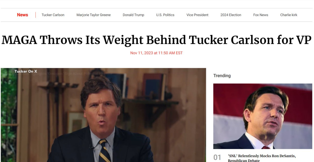 Newsweek: сторонники экс-президента США Дональда Трампа всё активнее поддерживают его идею о том, чтобы на предстоящих президентских выборах его напарником стал бывший ведущий Fox News Такер Карлсон. Однако часть пользователей соцсетей не поддерживает эту инициативу, заявляя, что Такеру, ради сохранения объективности, не стоит идти на выборы.