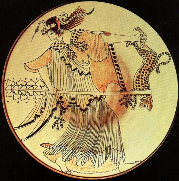 Сюжет такой. Дионис устанавливает в Фивах свой культ, увлекая женщин в празднества. Пенфей, царь Фив, противится этому, считая культ безнравственным. Как и современным мизогинам, Пенфею кажется подозрительной и непременно непристойной любая женская активность, выходящая за рамки домашней работы и ухода за детьми и мужем. Прослышав о том, что «домА, детей фиванки побросали, в вакхическом безумии они скитаются в горах, поросших лесом», он тут же вообразил невесть что и решил покарать разврат и непотребства. Дед Пенфея Кадм и прорицатель Тересий пытаются уверить распалившегося царя, что ничего плохого женщины, ушедшие в горы, не делают, но Пенфей, пылкий поборник нравственности с больным воображением (а эти два качества всегда ходят в паре почему-то), им не верит. Тем временем во дворец к Пенфею приходит вестник, который видел этих скитающихся по лесам вакханок, наблюдал за ними и не увидел в их поведении ничего недостойного. Он говорит Пенфею: «а ты-то уверял, что пьяные вином и звуком