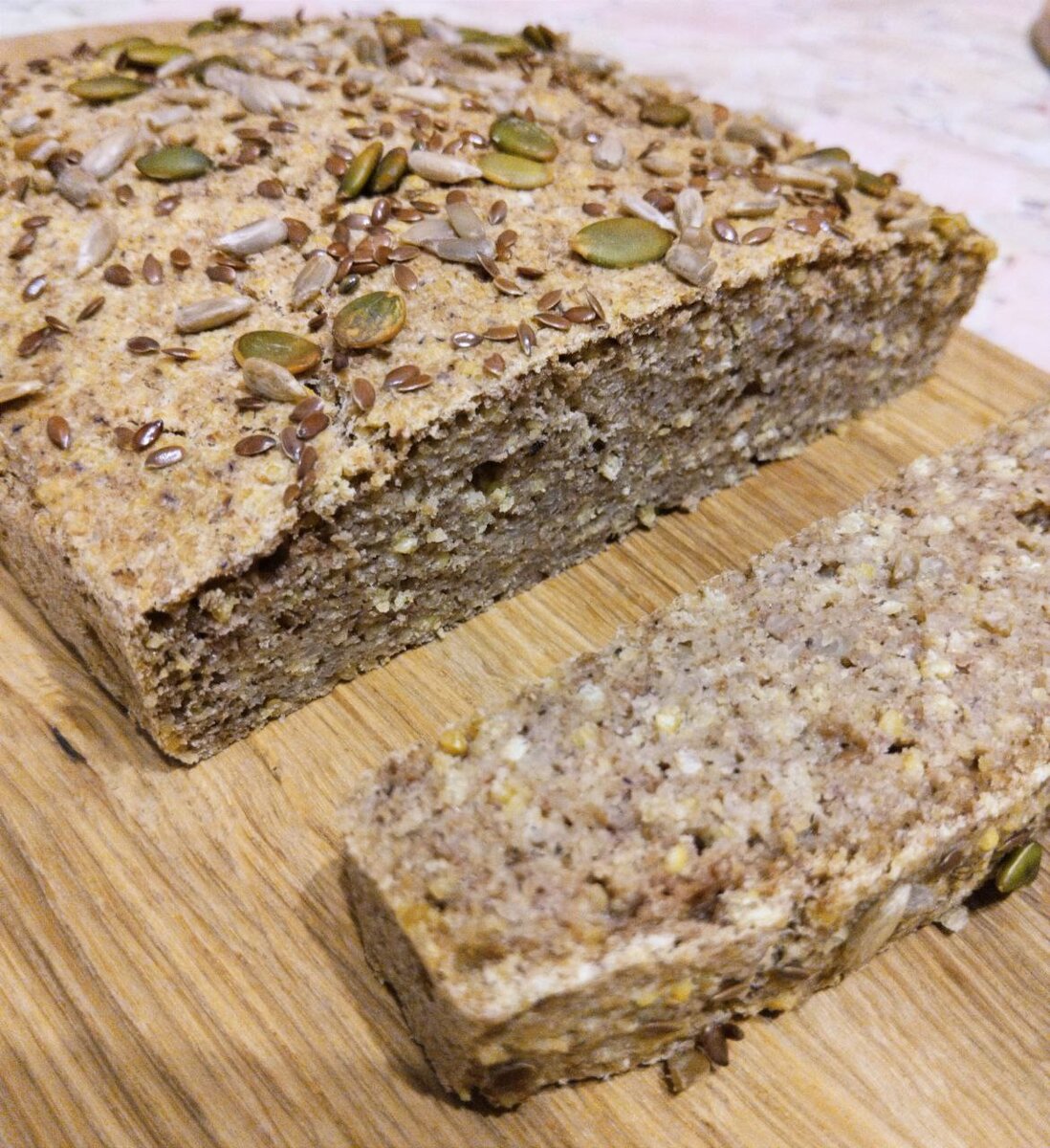 Безглютеновый хлеб Сегодня поделюсь рецептом полезного и вкусного хлеба без муки! Ингредиенты: 1 стакан зеленой гречки 1 стакан пшена 2 ст.л. растительного масла 1 ч.л. соли 0,5 ч.л. соды 2/3 стакана тёплой воды 2 ст.л. псиллиума. ✔️Зеленую гречку и пшено заливаем водой и оставляем на ночь. ✔️Утром промываем крупу, высыпаем в блендер, добавляем теплую воду и измельчаем до однородной массы. ✔️Далее добавляем масло, соль, соду, псиллиум. ✔️Форму смазываем маслом, выкладываем тесто. Сверху можно чем-нибудь посыпать (семенами чиа, кунжутом, семечками). ✔️Ставим в разогретую до 185 градусов духовку на один час. Достаем, даем остыть, вынимаем из формы. Готовьте на здоровье!