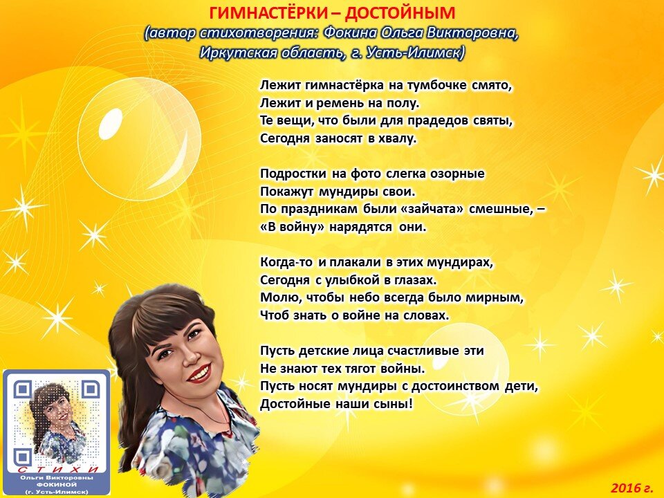 Гимнастёрки - достойным (стихи Ольги Фокиной, Усть-Илимск)