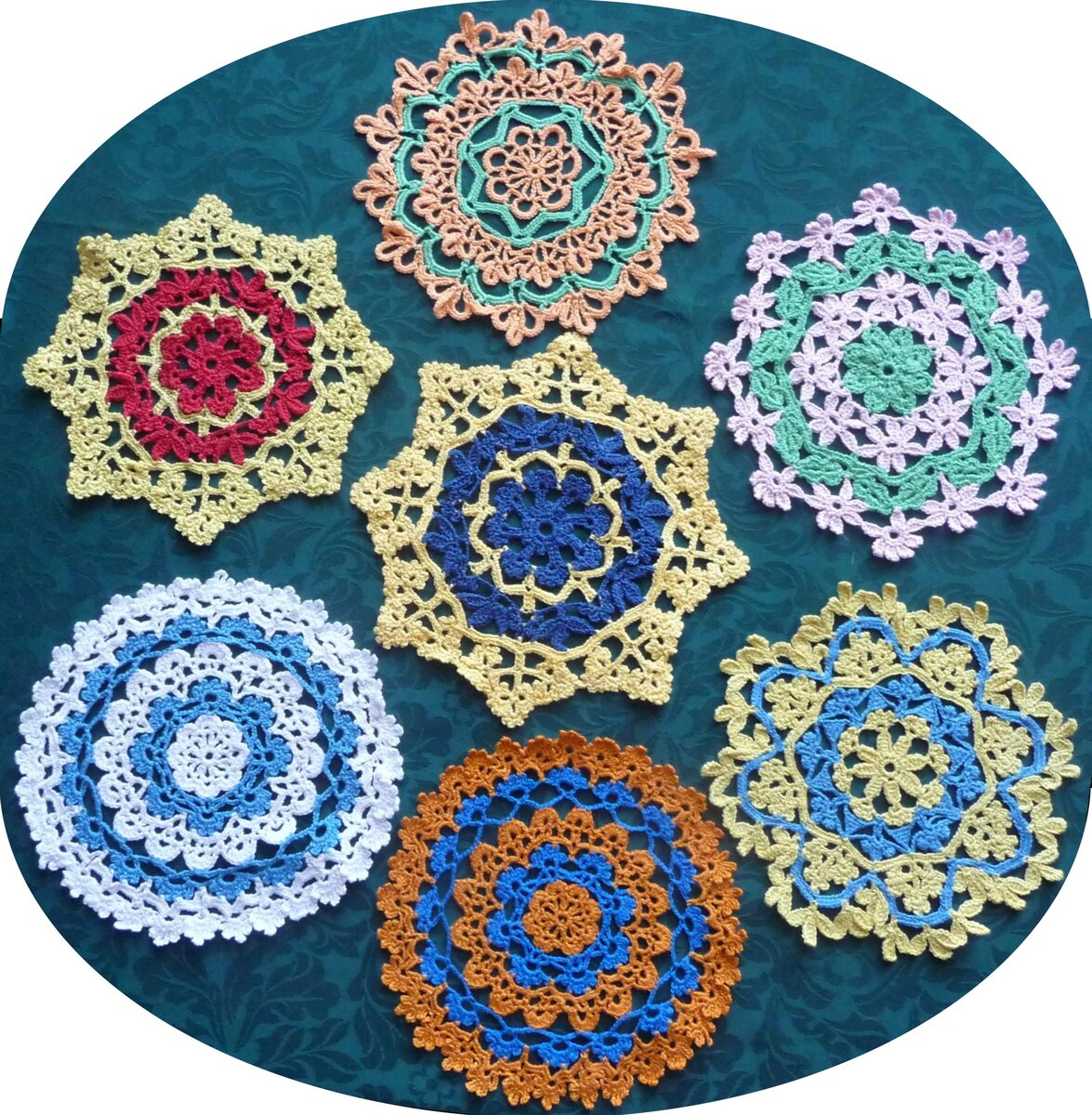 1-ый Размер 7 ½ дюйма в диаметре (19 см) при вязании крючком № 2 Хлопок № 4,