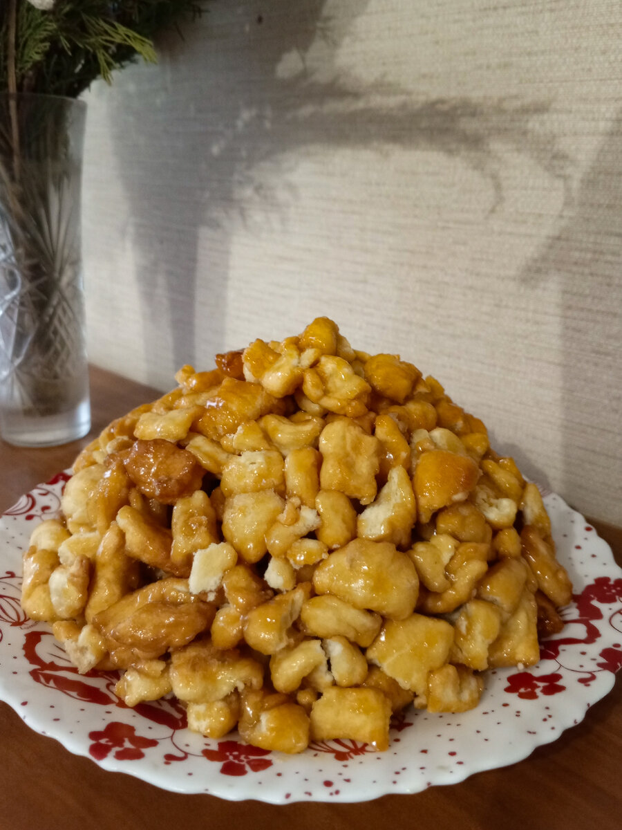 Вкусное и простое в приготовлении лакомство на все случаи жизни) Нам понадобятся: Для сиропа: Приготовление: Возьмем 3 яйца и начнём их взбивать. Добавим к ним 1 ст. л. сахара, щепотку соли, 1 ч. л. разрыхлителя и 3 ст. л. молока. Затем перемешиваем ингредиенты и всыпаем небольшими порциями муку — около 300–450 г, количество зависит от размеров яиц. Месить нужно до тех пор, пока тесто не станет эластичным, но оно должно немного прилипать к рукам. Если есть время, даем тесту полежать — пусть немного отдохнет! Насыпаем на стол немного муки и раскатываем тесто в тонкую лепешку толщиной примерно 2 мм. Острым ножом нарезаем длинные полоски шириной 1 см, а потом делим их на несколько частей, длиной около 4 см. Эти аккуратные брусочки, напоминающие картофель фри, готовы к обжариванию. Осталось пожарить чак-чак во фритюре. Для этого наливаем в глубокую сковороду или толстодонную кастрюлю побольше растительного масла, нагреваем его и закладываем порциями кусочки теста. Обжариваем до зол