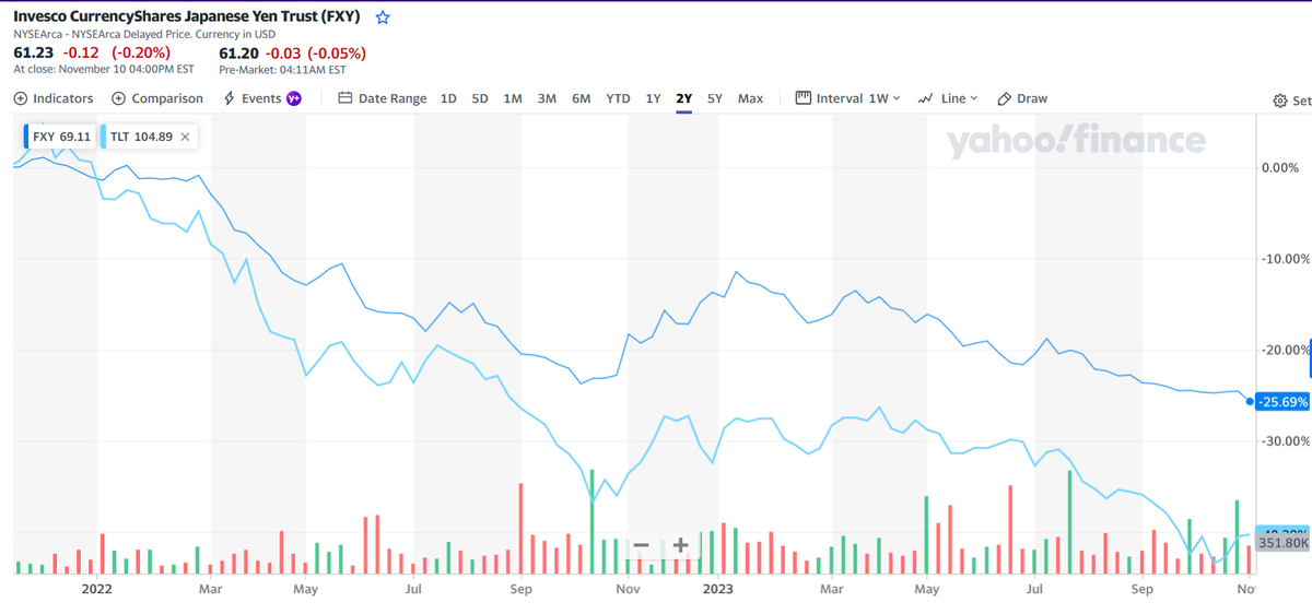 За последние два года убыток по иене 26%, по длинным трежерям 40%, если принять в расчет купоны , то убыток сократится до 35%.
