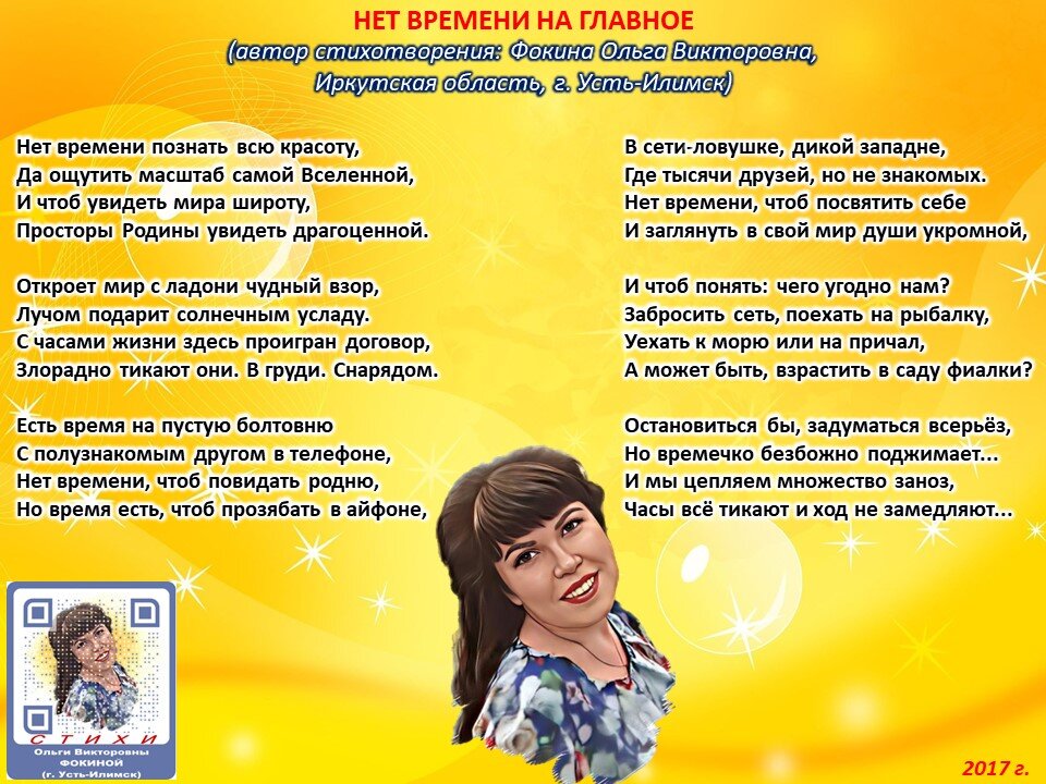 Нет времени на главное (стихи Ольги Фокиной, Усть-Илимск)