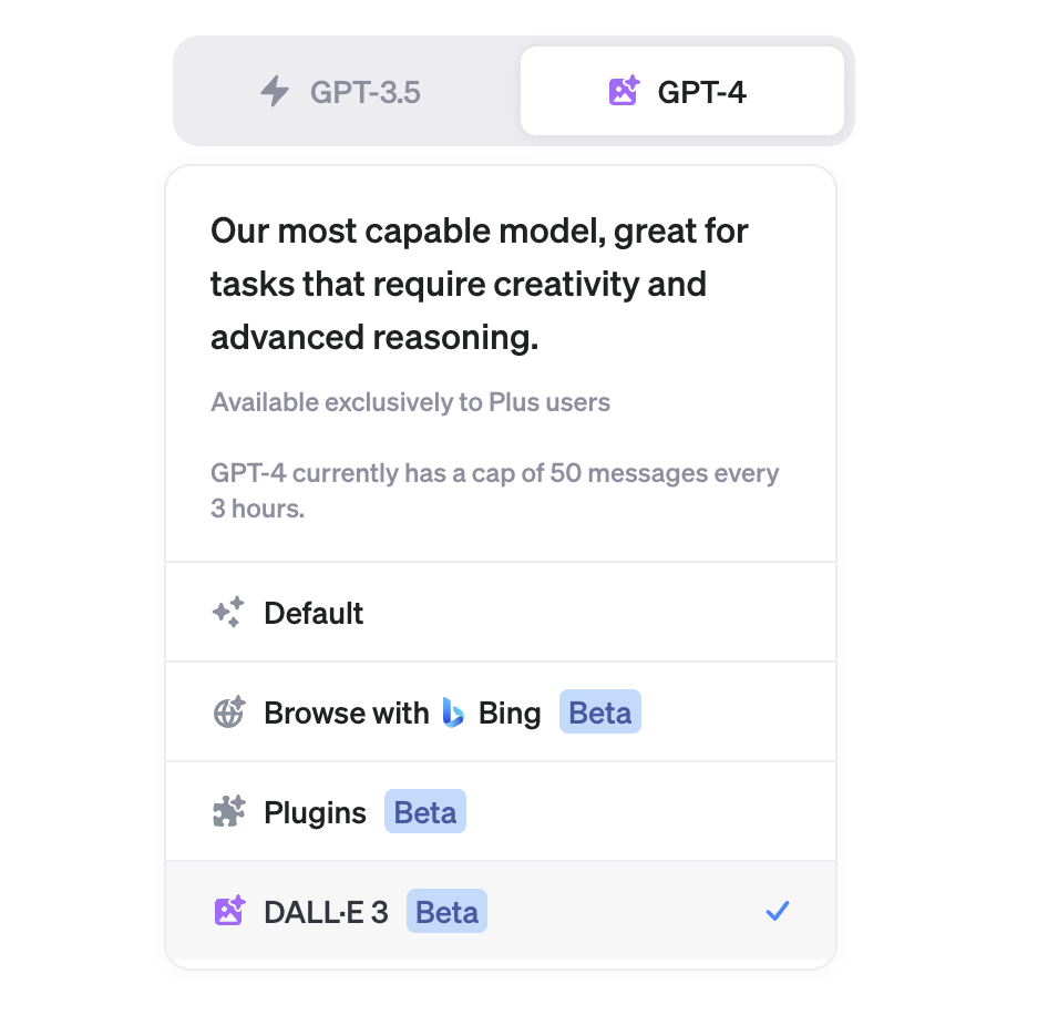 2. Нажмите кнопку GPT-4 вверху и выберите DALL-E 3.