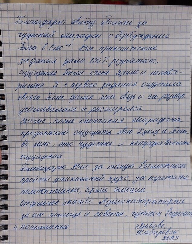 Сейчас, после окончания Марафона продолжаю ощущать свою Душу и Бога во мне, это чудесные и неповторимые ощущения.