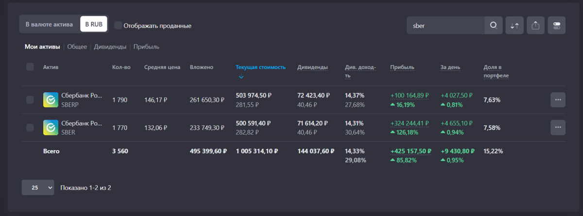Сбер стал первой компанией в российском портфеле, стоимость акций которой превысила психологическую планку 1 миллион рублей. Ранее я предполагал, что первой такой компанией станет Лукойл. Приятным бонусом к этому были дивиденды Сбера. За время владения я получил 95000₽, эта сумма не учтена на скрине - там указаны прогнозные дивиденды в размере 40,46₽ на акцию в следующем году.