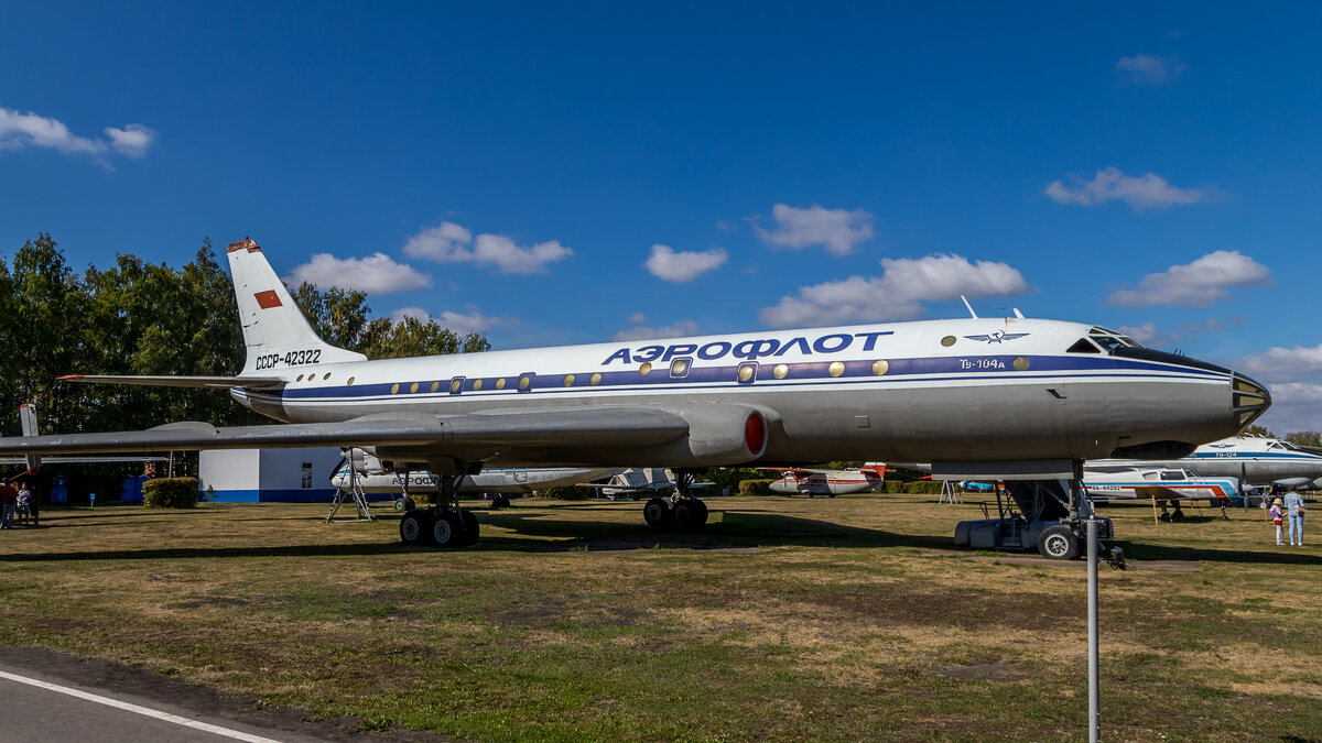 10 ноября исполнилось 135 лет со дня рождения великого советского авиаконструктора Андрея Николаевича Туполева. Он прожил очень сложную и яркую жизнь, оставив после себя наследие, которое мы с вами все ещё донашиваем. Сегодняшний я расскажу о пассажирских самолетах Туполевского КБ, на примере бортов выставленных в экспозиции музея гражданской авиации в Ульяновске. Первые пассажирские самолеты Туполева были созданы на базе бомбардировщиков, это позволило значительно сократить сроки проектирования. Первым советским (и вторым в мире) пассажирским реактивным самолетом стал Ту-104, совершивший первый полет в 1955 году. Он создавался на базе Ту-16, от него новая машина получила компоновку кабины экипажа, крыло, оперение, шасси и пилотажно-навигационное оборудование. Новыми были фюзеляж и воздухозаборные устройства. Появление этого самолета заставило реконструировать крупные аэропорты страны и значительно сократило время перелетов. Была выпущена 201 машина, которые находились в эксплуатаци