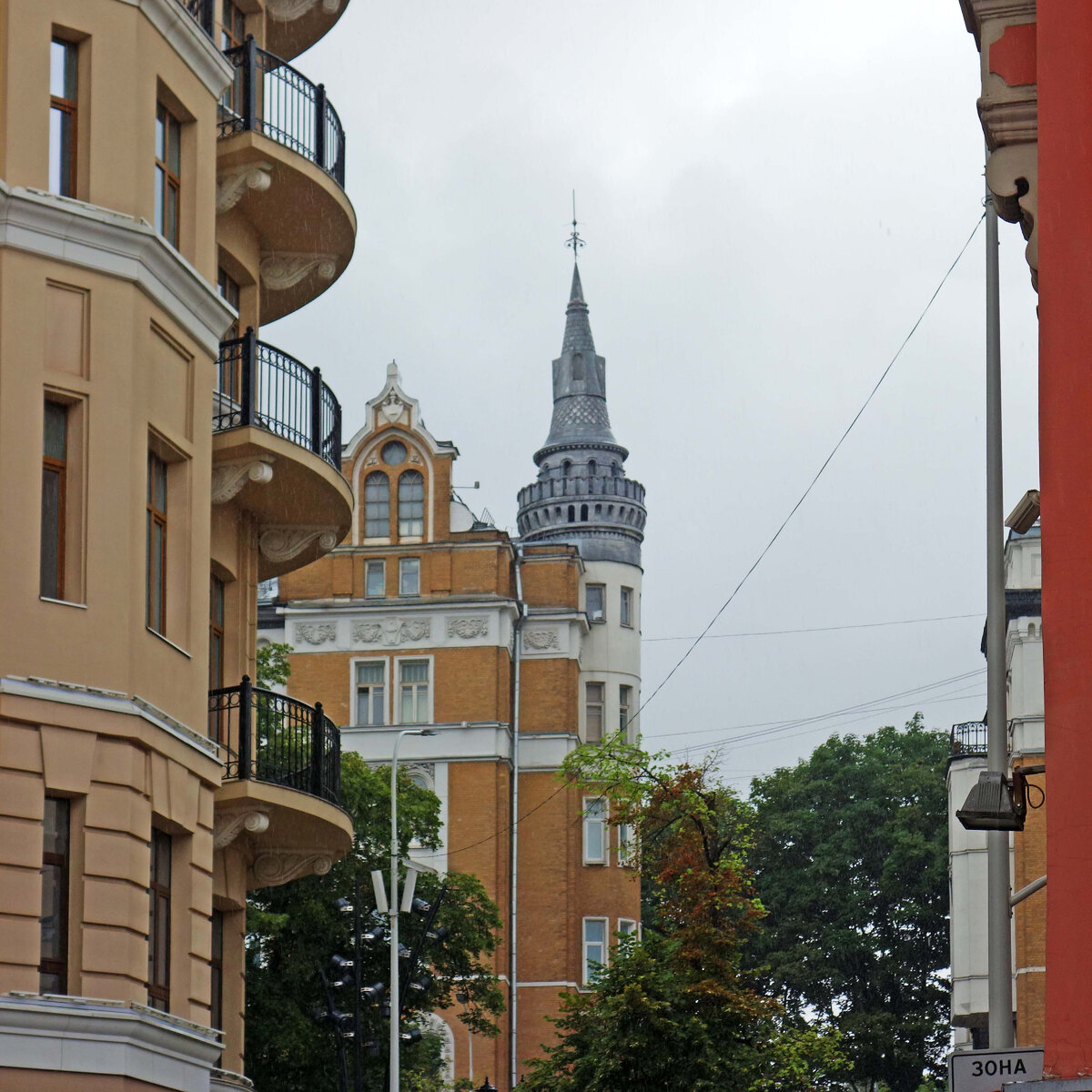 Доходный дом из двух корпусов в стиле эклектики на Сретенском бульваре построен в 1899-1902 годах для страхового общества «Россия» по проекту архитектора Николая Михайловича Проскурнина (в соавторстве). Здание имеет статус объекта культурного наследия федерального значения, и его часто называют самым красивым домом Москвы.
