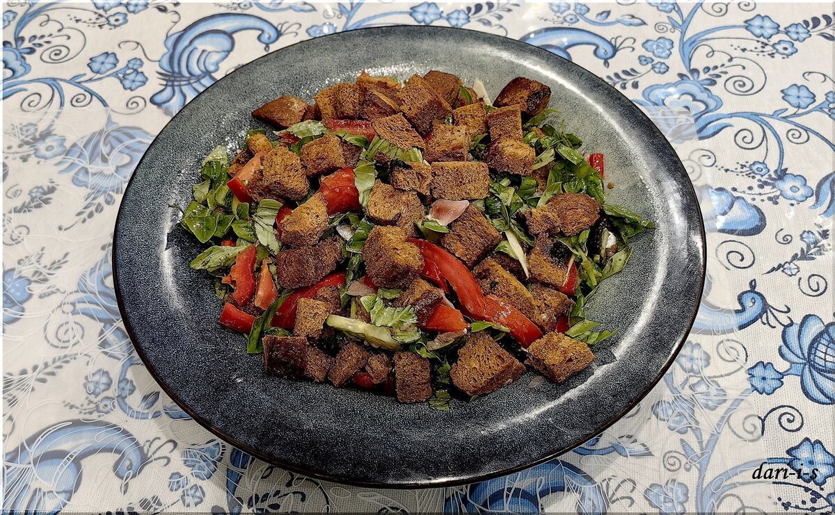 Необычный салат с анчоусами, помидорами и хлебом. Сытный, простой и очень вкусный.