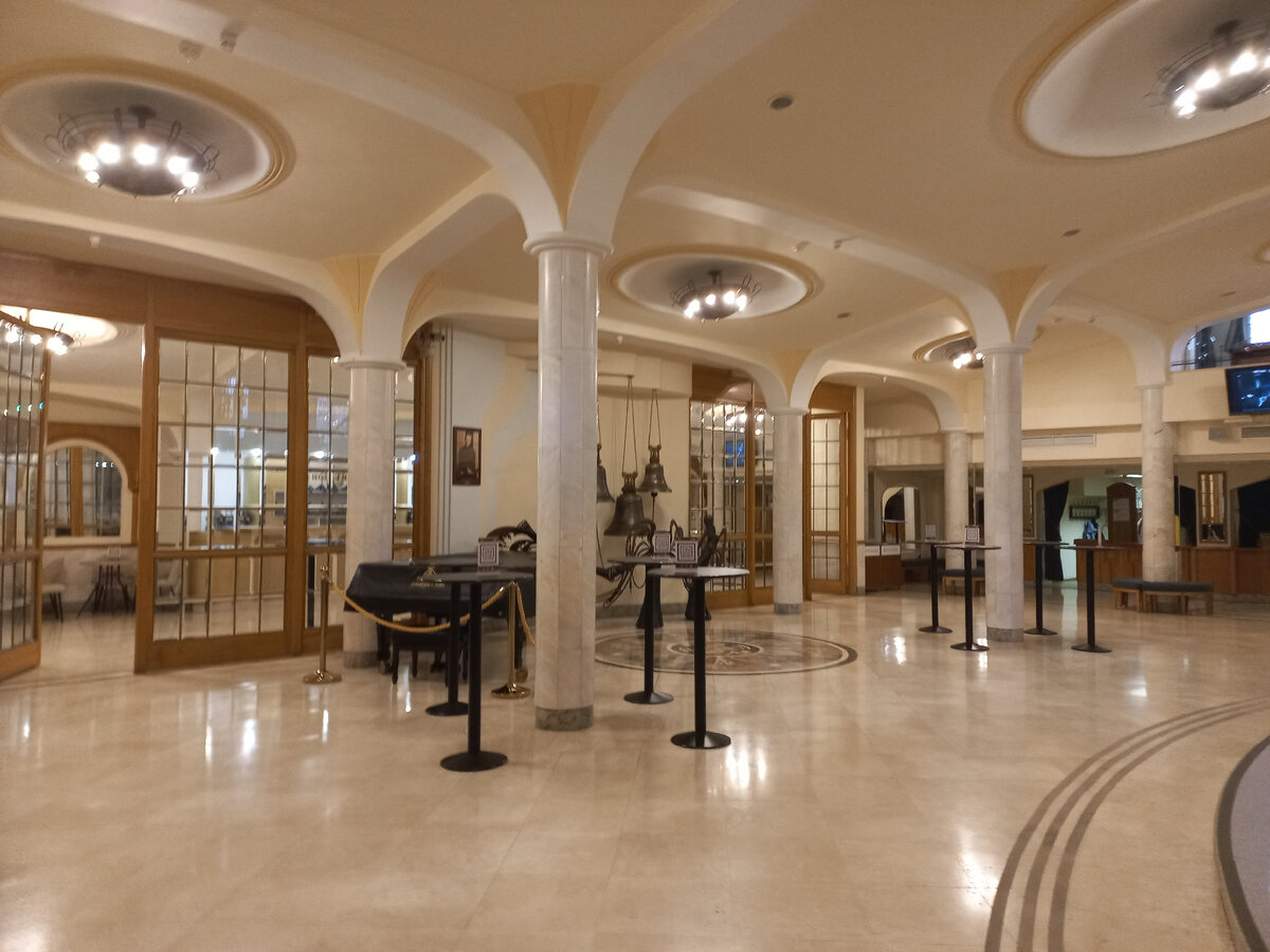 После того, как мы с сыном сходили на Историческую экскурсию в Геликон-оперу, пришла мне в голову идея проверить, а нет ли подобных экскурсий и в другие оперные театры Москвы. К моей радости, такая нашлась сразу же в уже полюбившейся мне “Новой опере”. Предложила сыну сопровождать меня и на эту экскурсию тоже, он охотно согласился. Начиналась экскурсия в субботу в 16-00, стоимость билета для одного человека - 1000 рублей. Его можно предъявить в распечатанном виде или на экране смартфона. Когда мы пришли, нас отправили самостоятельно раздеваться в гардероб, и ждать остальных экскурсантов в главном фойе. Было очень приятно и даже как-то сказочно находиться там без людей. К сожалению, продлилось это недолго. К назначенному времени группа собралась. Всего было 15 человек, включая четверых детей: трех девочек и одного мальчика. Все в возрасте 6-7 лет. Мальчик этот начал вызывать подозрения еще до начала экскурсии: он с топотом носился по фойе, возил машинку по ограждению гардероба. Полюбуйт