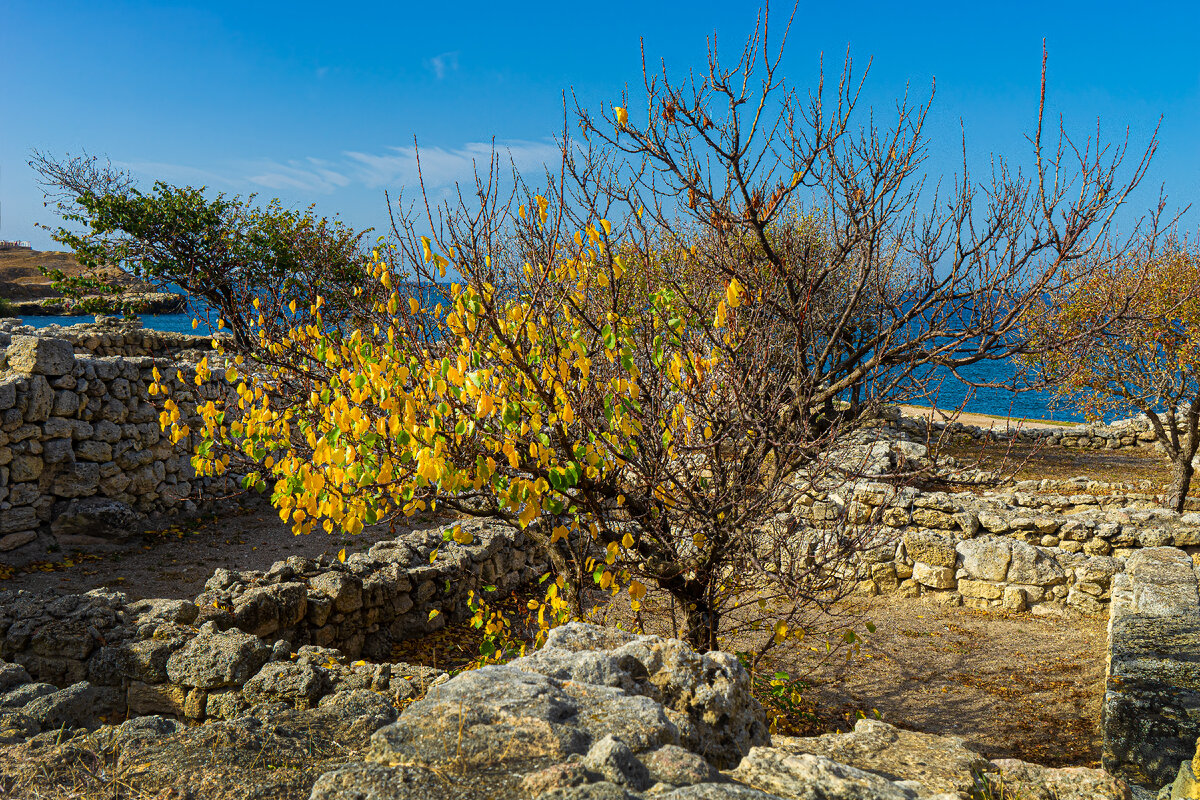 Но главной целью моего нынешнего визита в Херсонес было буйство синих и желтых красок осени. Аналогию с флагом Швеции и других сопредельных государств прошу не искать.