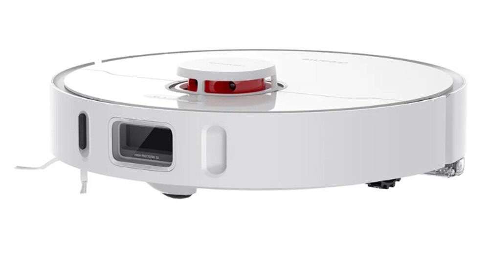 Корпус пластиковый, в его верхней части расположился датчик лидар, который отвечает за компьютерное зрение. Благодаря ему, пылесос строит карту помещения, понимает, где он уже прибрался, а где ещё нет, и объезжает препятствия, не сталкиваясь с мебелью и стенами. На верхней поверхности пылесоса также есть кнопки для запуска и остановки уборки, активации режима точечной уборки для сильно загрязненных участков и включения пылесоса для возврата на станцию для подзарядки.
