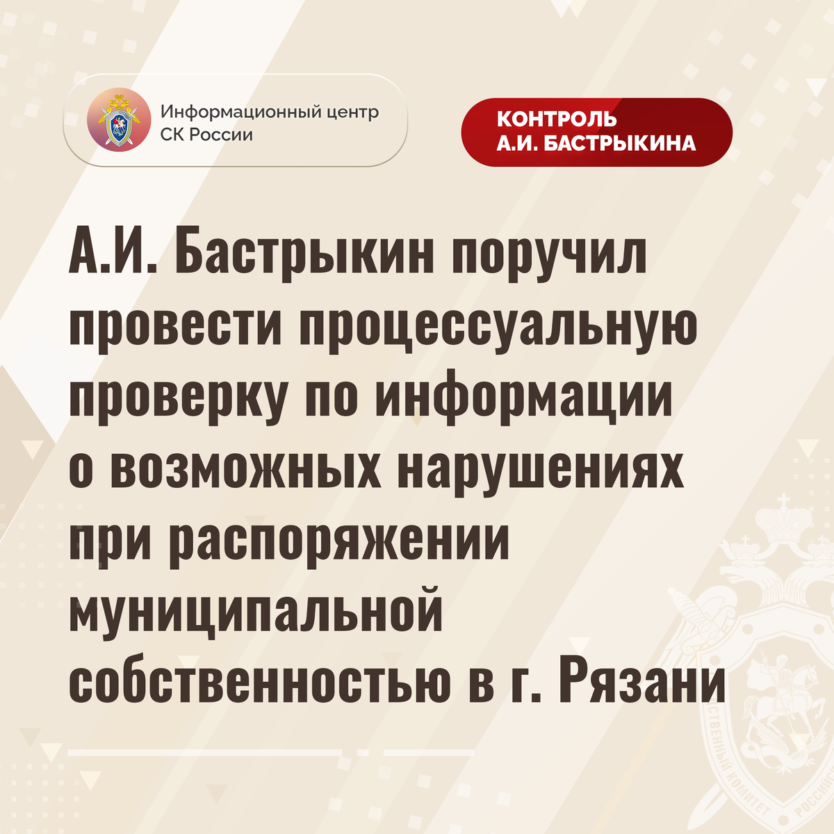 #СледственныйКомитет #СКРоссии #СКР #ИЦСКР #Информационныйцентр #АлександрБастрыкин #ПредседательСКР #КонтрольПредседателяСКР #КомментарийКонтроль #РязанскаяОбласть