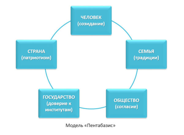 Пятиуровневая модель «пентабазис», предложенная Администрацией Президента России, – это собранные воедино базовые факторы социально-исторического развития и структурированные ценностные доминанты, на основе которых формируется мировоззрение гражданина России. В СМИ довольно много осуждающих статей относительно данной модели, однако ничего сверхъестественного здесь не присутствует. Более того, уверена, что большинство представителей системы образования скажут, что данные ценности всегда были основой образования, на уроках гуманитарных дисциплин именно эти доминанты обсуждались испокон веку.
