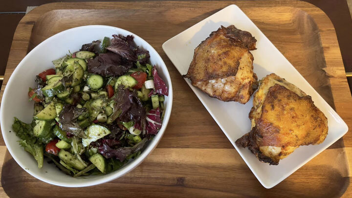 Сделала соус: горчица, сметана, соль, перец и любимые специи (у меня: куркума, перец чили, сушеные лук и чеснок). Хорошо обмазала бедра и отправила на ночь в холодильник. На следующий день приготовила на гриле при температуре 170 градусов (30 минут). Можно и в духовке. Бедрышки промариновались и были очень вкусными. На ужин – салат из овощей и салатной смеси (200 г) и бёдрышки (250 г). КБЖУ – 472,5/54,5/23,5/10. От наших друзей: Алексей Романов, лидер группы "Воскресение", на Радио Медиаметрикс Больше общения и рецептов - в группе "Рецепты для диабетиков" в ВКонтакте! Рецепт на странице Автор рецепта – Ayash Strickland © Почтенный возраст Online и Рецепты для диабетиков