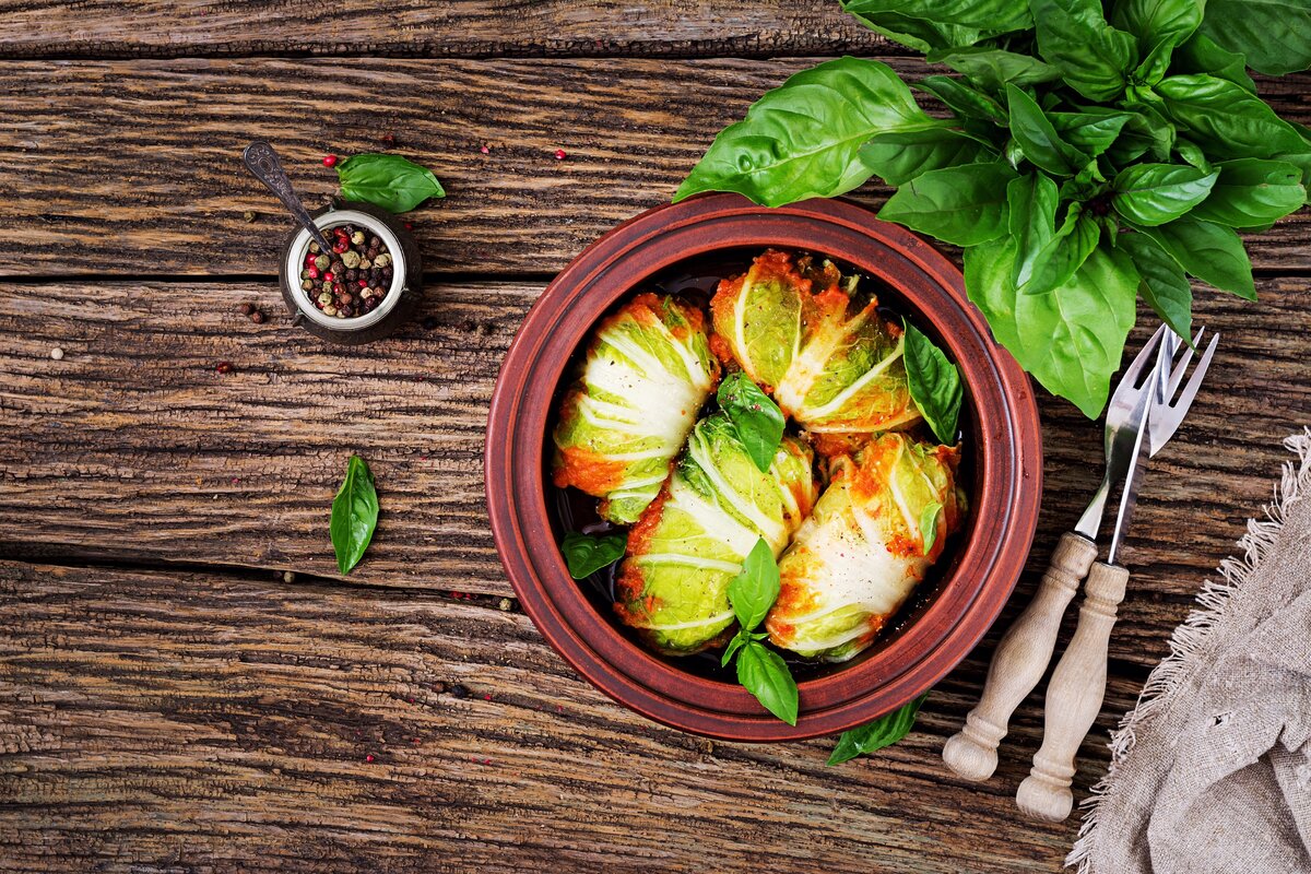Ингредиенты: - 1 куриное филе - 1/2 стакан риса - 1 кочан капусты - 1 луковица - 2 зубчика чеснока - 1 банка томатного соуса - соль, перец, специи по вкусу - зелень для украшения Приготовление: 1. Разогрейте духовку до 180 градусов. 2. Отварите рис в подсоленной воде до полуготовности, затем откиньте на дуршлаг и дайте стечь лишней воде. 3. Отделите листья капусты от кочана. Затем обдайте листья кипятком, чтобы они стали мягкими и можно было бы их скручивать. 4. Лук и чеснок мелко нарежьте. 5. Обжарьте лук и чеснок на сковороде до золотистого цвета. 6. Смешайте фарш из курицы с рисом, добавьте соль, перец, специи по вкусу. 7. Начините листья капусты фаршем и скрутите их в голубцы. 8. Выложите голубцы в форму для запекания, залейте томатным соусом. 9. Запекайте в духовке при 180 градусах около 30-40 минут. 10. Подавайте голубцы, политые томатным соусом, украсьте зеленью. Приятного аппетита!