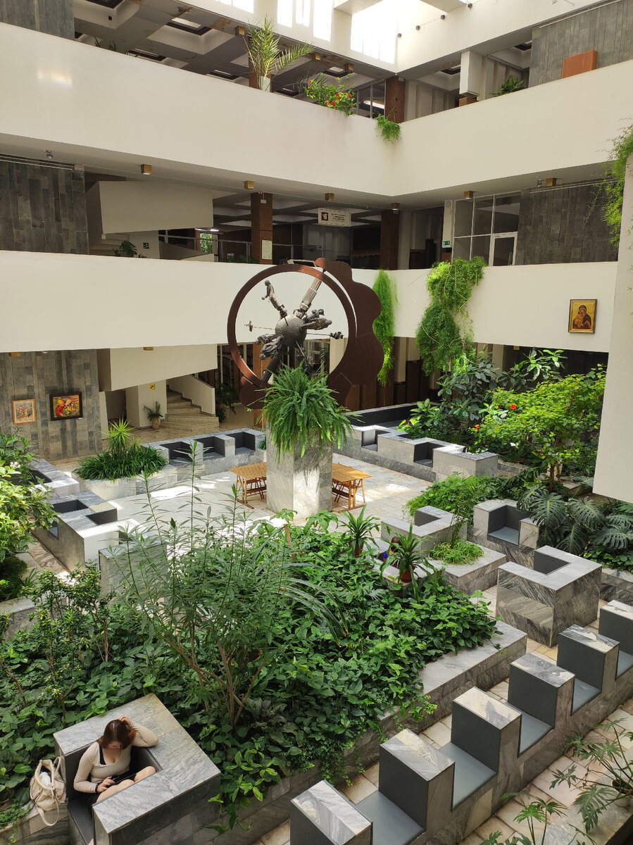 Согласитесь, не каждый путешественник во время знакомства с новым городом стремится попасть в библиотеку. Одно дело посетить театр, а зачем идти сюда!? Донская публичная библиотека разрушает все стереотипы. Не хотите читать? Да и не надо. Здесь нужно фотографировать. К тому же, вход свободный. Говорите охраннику, что вы турист, и вас пропускают. Никакой читательский билет оформлять не надо. Донская библиотека - крупнейшее на юге России хранилище книг. И кто бы мог подумать, что за строгим, темным, лишенным декора фасадом прячутся настоящие джунгли. Светлый интерьер с огромным количеством зелени, стеклянный потолок, умиротворяющий звук воды в фонтане очень располагают к чтению и погружению в свои мысли. А ещё в летний зной библиотека - настоящее спасение от жары. Я заметила, что многие приходят сюда просто посидеть и отдохнуть, но есть и желающие почитать. Ростов-на-Дону, ул. Пушкинская, 175 А.