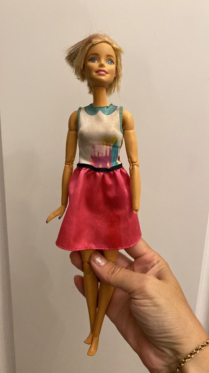 Куколку я купила на Удельном рынке. У нее отсутствовала кисть, были обрезаны волосы, да и мордашка была грязная. На удивление, все шарниры у Милли были тугие, не расшатанные. А ведь, внешне, куколка была довольно потрепана жизнью.