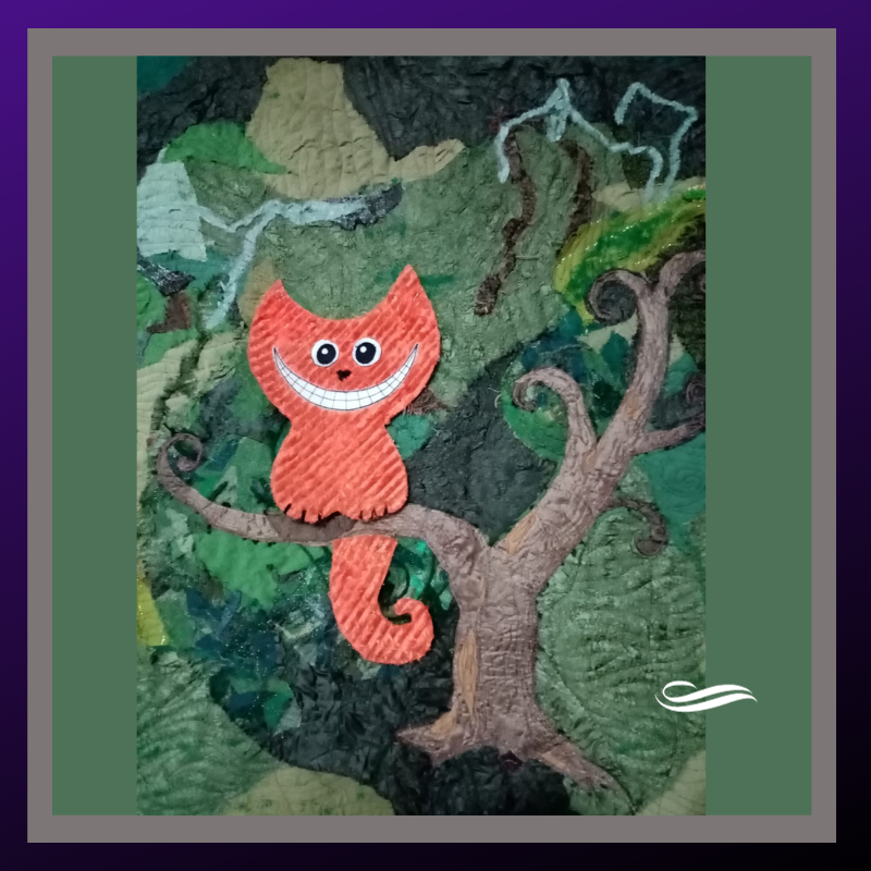 Марусин "Апельсиновый кот" ("подмалёвок"). Он ещё не готов, но очень уж милый!Текстиль. Техники: фильцевание, свободно-ходовая стёжка, синель (кот)..Я называю его Чеширским :)