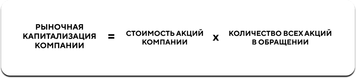 - Формула расчета: Рыночная капитализация компании = Стоимость акций компании Х Количество всех ее акций в обращении