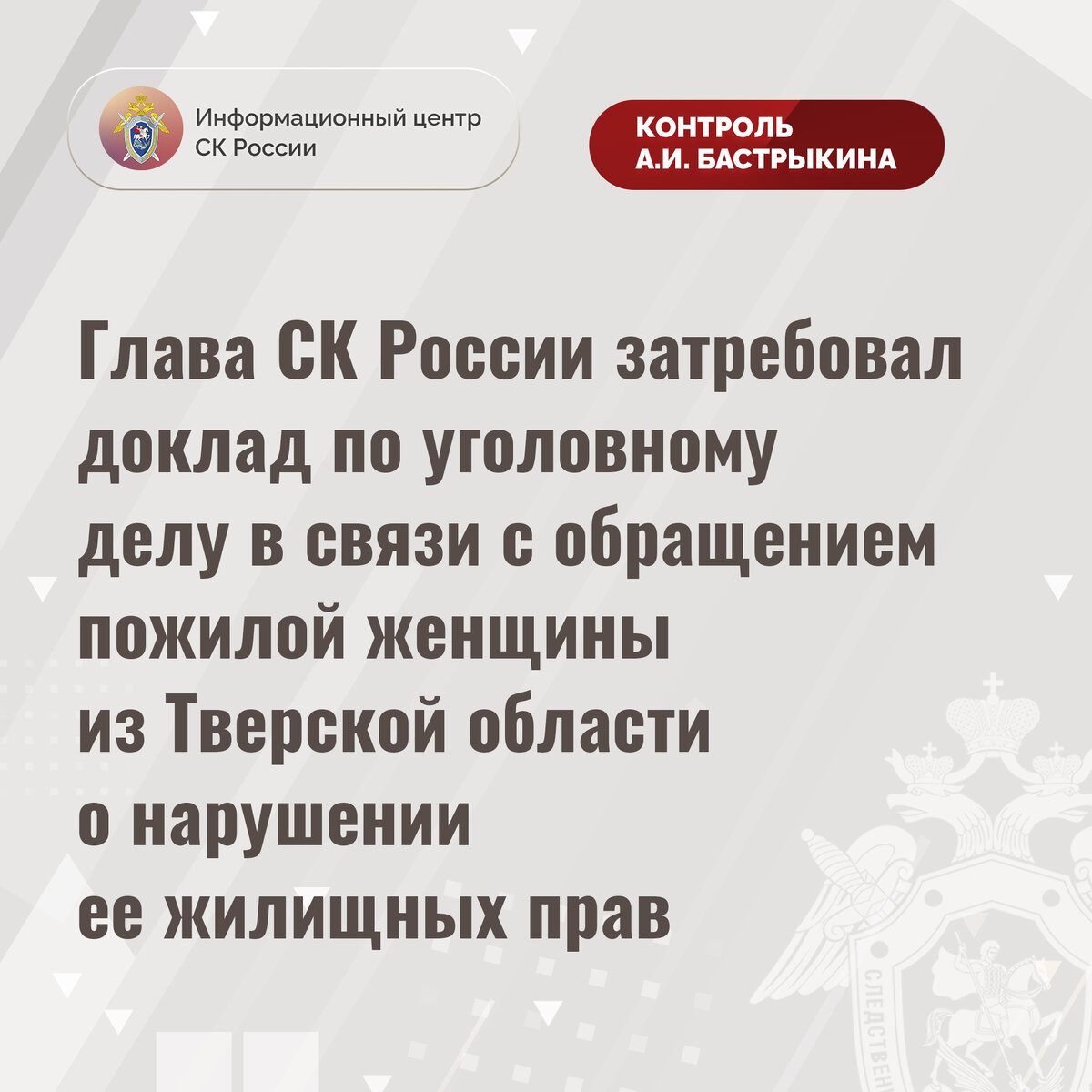 Глава СК России затребовал доклад по уголовному делу в связи с обращением пожилой женщины из Тверской области о нарушении ее жилищных прав