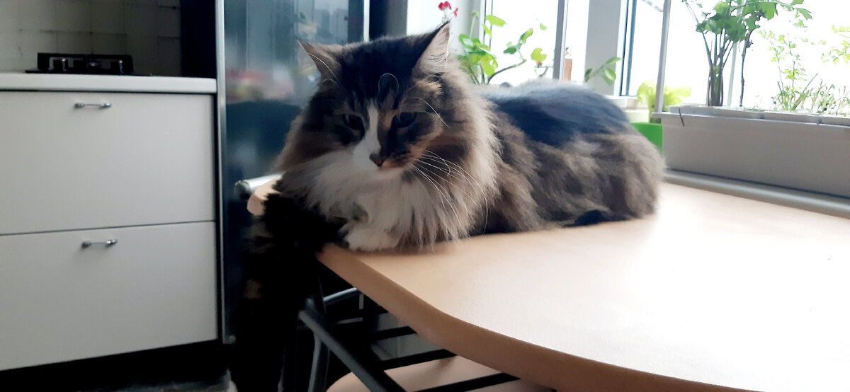 У тебя там кот на столе! - панически голосила родственница, заглянувшая с визитом. Я высунулась из спальни на шум. Как раз доставала из шкафа чистую скатерть. Кот на вопли гостьи ухом не вел. Если б я стала сражаться с ним за все плоскости в квартире, то ни на что больше времени бы не оставалось. Уж не упоминаю, что война эта заведомо была бы обречена на провал. Кошковладельцы поймут. Я просто стелю скатерть, когда мы садимся за стол. Предварительно, конечно, его протираю. Скатерть - сигнал, который даже наш кот понимает. Нехотя, но с достоинством он покидает обеденную зону. Накрытый стол для него табу. Может, конечно, у вас по-другому. Главное, чтоб всем было удобно и комфортно. И безопасно в плане гигиены. Кошки и в общежитии со мной жили, и в коммуналке, и в командировках находили, и даже на отдыхе прибивались почему-то именно к моему номеру в отеле. Я уже писала недавно, как собираюсь защитить свежий ремонт от посягательств кошачьих когтей. Сегодня готова показать. Как