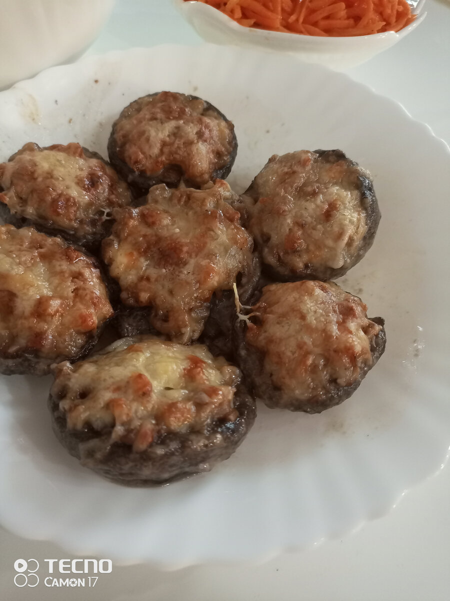 Прекрасный вариант для закуски) Ингридиенты: Приготовление: Шаг 1: По вашему желанию грибы можно замариновать, для этого у грибов отрываем ножки и откладываем их в сторону, они ещё пригодятся. В шляпки добавляем 1ст.л майонеза, 2ст.л соевого соуса, соль, перец по вкусу. Оставляем грибы мариноваться на 20-30мин. Шаг 2: Мелко нарезаем лук, ножки от грибов, а так же курицу/колбасу (курицу можно взять отварную, обжаренную либо копчëную). Шаг 3: Все что мы нарезали (см.Шаг2), обжариваем в сковороде до золотистой корочки, выкладываем в пиалку и добавляем майонез. Шаг 4: Грибы выкладываем на противень, выкладываем нашу смесь в грибы, сверху посыпаем тёртым сыром и убираем в духовку на 180-200° на 15-20мин. Грибочки готовы, можно подавать как закуску, либо отварить к ним гарнир(картофельное пюре). Всем приятного аппетита!
