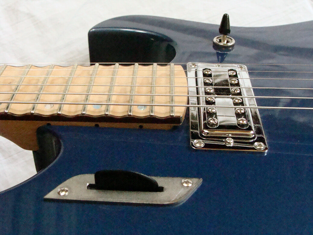 Окрашена дека в цвет Lake Placid Blue, без “искры”, но не такой бледный, как распространённый Sonic Blue. Также присутствует на деке “прорезь” под крепление медиатора: полезнейшая опция для практикующего музыканта! И вечный предмет спора для приверженцев традиционных конструкций гитар.