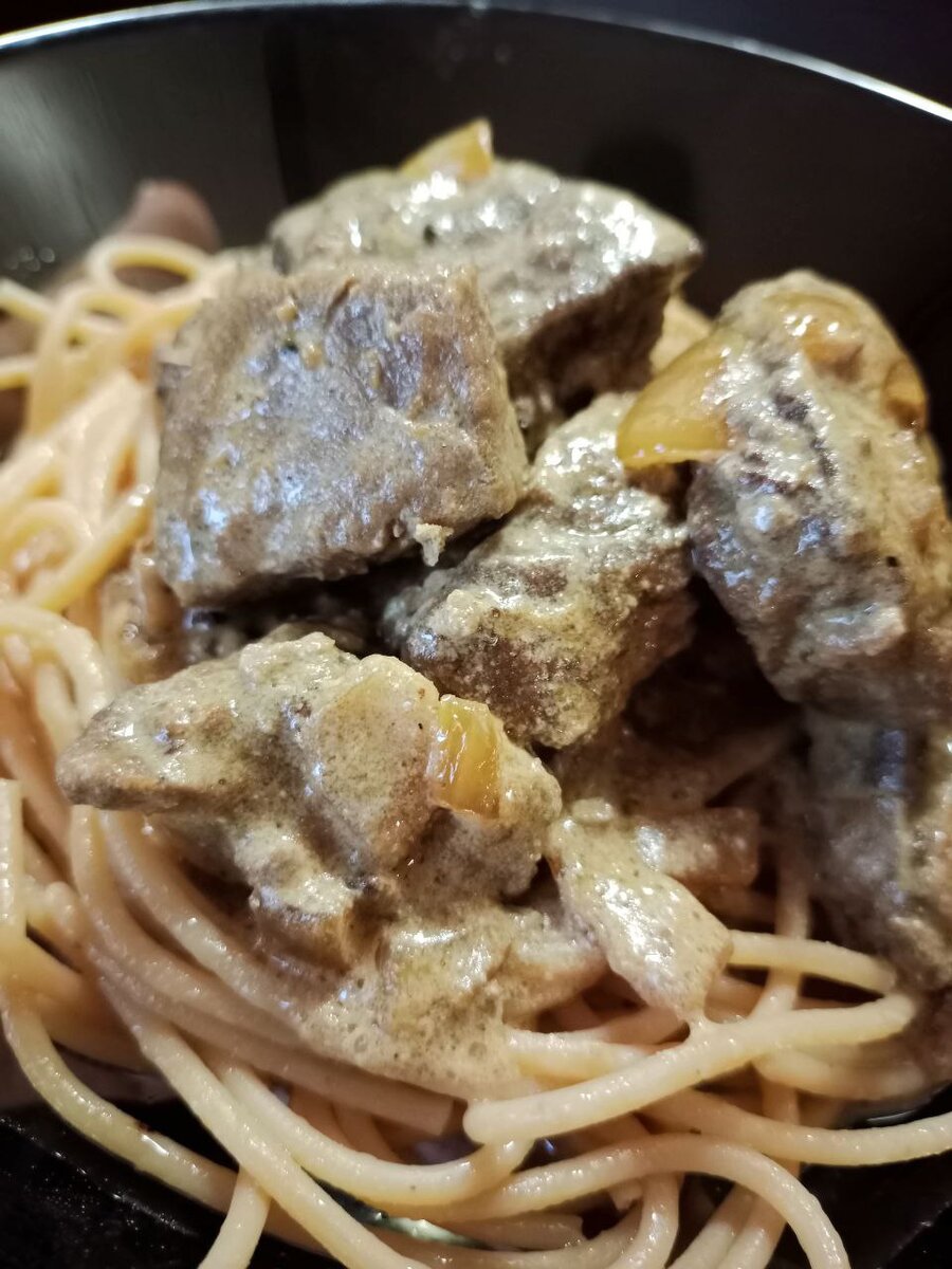 Говяжья печень, тушеная в сметане - это изысканное блюдо, которое обязательно удивит ваших гостей. Кусочки печени, обжаренные до золотистой корочки, затем тушеные в нежном сметанном соусе, приобретают неповторимую текстуру и вкус. Это блюдо идеально сочетается с картофельным пюре,рисом или спагетти, а также с овощными салатами. Не упустите возможность порадовать своих близких этим вкусным и полезным блюдом! Ингредиенты: Печень говяжья - 800 грамм Сметана - 200 грамм Мука - 5 ст.л Лук - 2 шт Соль, перец - по вкусу Топленое масло Печень промывается под холодной водой и аккуратно очищается от пленок, чтобы сохранить нежную текстуру блюда. Печень нарезается небольшими кубиками для того, чтобы она равномерно прожарилась и сохранила свою сочность. Печень обваливается в муке, чтобы создать аппетитную корочку и сохранить сочность внутри. Лук мелко нарезается для того, чтобы он хорошо чувствовался в блюде и дополнял вкус печени. Сковороду с толстым дном разогревают на среднем огне, добавл