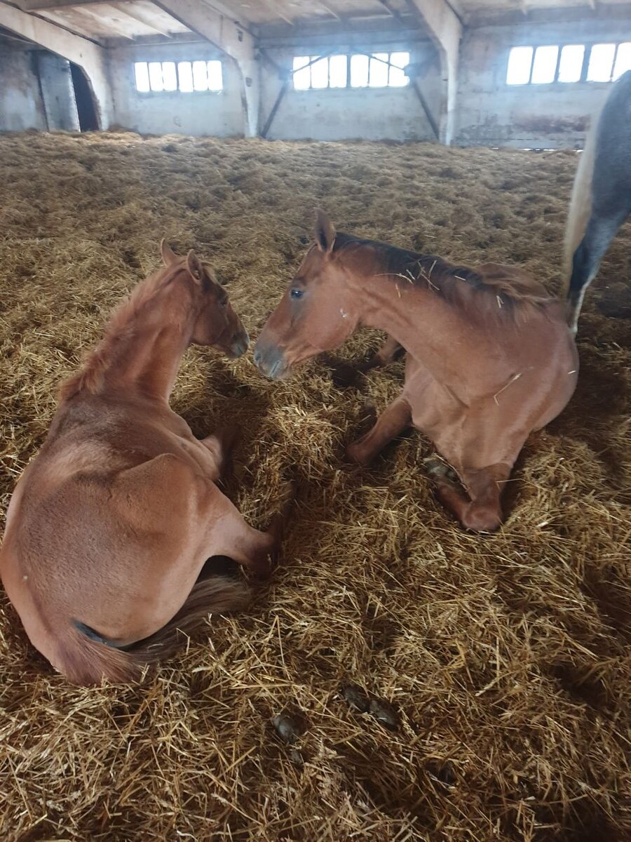В нашем приюте табунное содержание лошадей, но это не значит, что лошади 24/7 проводят на улице. В предыдущих статьях мы рассказывали об обустройстве нашей конюшни, что у нас есть: Так вот, первая огромная левада вмещает в себя большую часть табуна, где-то 140 голов, и все они иногда (очень редко!) нуждаются в крове. Как правило, это происходит в дождливую и ветренную погоду, но никогда в хорошие морозные дни и ночи. Даже в -35 большая часть лошадей спит на улице, им так комфортно! - мы видим это по камерам наблюдения, которые работают круглосуточно. "Большой домик", так называемая открытая конюшня - это здание бывшего коровника, откуда мы всё вынесли, разровняли пол, застеклили окна, заткнули щели и время от времени застилаем свежей соломой. Получается эдакий огромный денник на 140 лошадей. Лошади в нём спят на сухой соломе в тепле, укрываются от осадков и ветра и играют друг с другом. Огромная площадь позволяет делать это без страха задеть товарищей. Когда кто-то играет, все остал