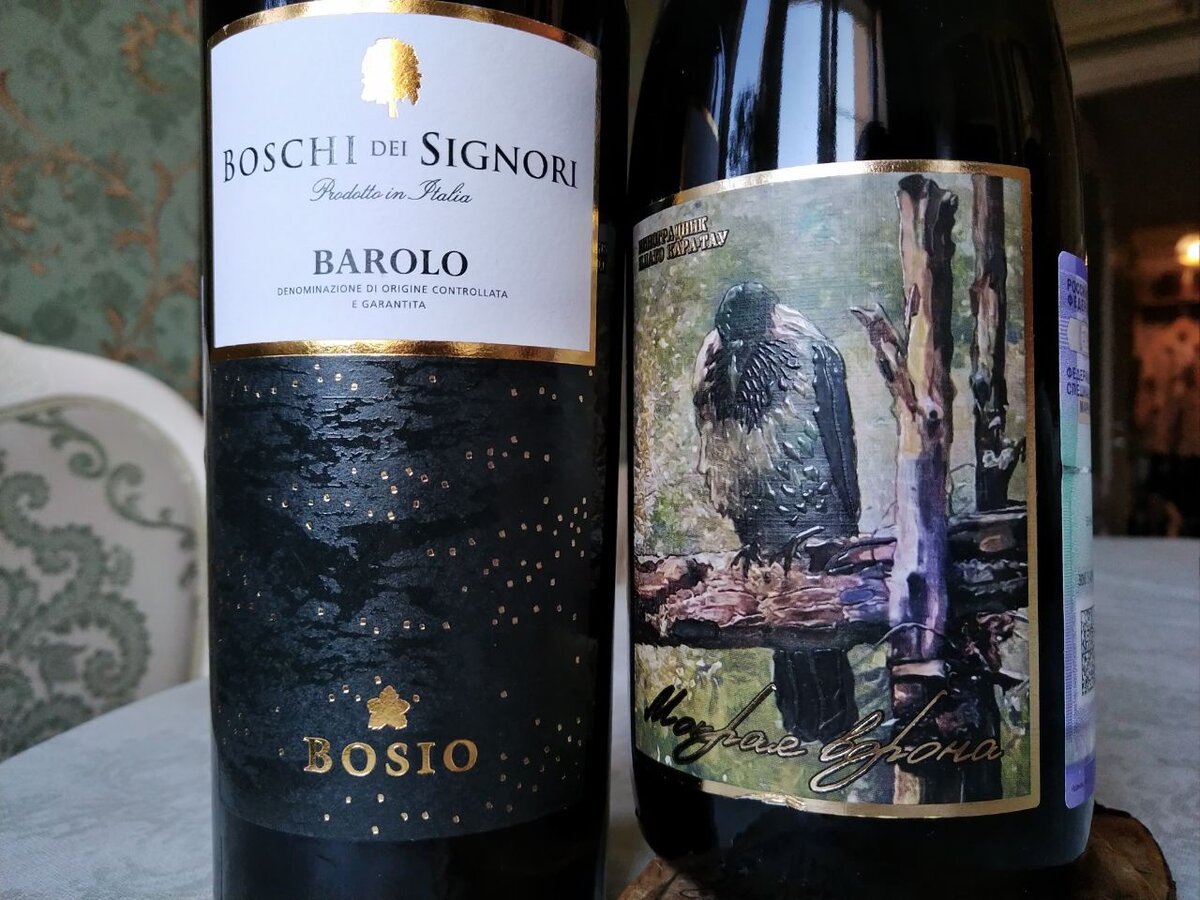 На оформление некоторых наших вин смотришь с особенным удовольствием. Имею в виду собственно идею и ориентированность на потребителя, под которой понимаю русский язык. Будете читать эту статью, обратите внимание на фото – у вина «Мокрая ворона» всё на русском, вплоть до названия сорта пино чёрный, а не пино-неро или пино-нуар. К сожалению, таких вин всё ещё не большинство. Но о таких приятно писать. У меня два несравнимых вина сегодня, которых объединяет то, что их как раз не с чем сравнивать. Такие мероприятия я называю параллельной дегустацией. Итак, у меня сегодня - вино бароло из Пьемонта (Италия) - Boschi Dei Signori Barolo. Сорт неббиоло урожая 2018 года и розлива января 2022 года. Купил в «Ароматном мире» за 1400р то ли на «сливе», то ли на распродаже. Обычно стоит дороже. - вино «Мокрая ворона» с крымского виноградника «Кара-Тау». Изготовлено на мощностях «Вейн унд Вассер», то есть, «садьбы Перовских». Тут ассамбляж мерло и пино чёрного урожая 2020 года. Купил в фирменном магаз