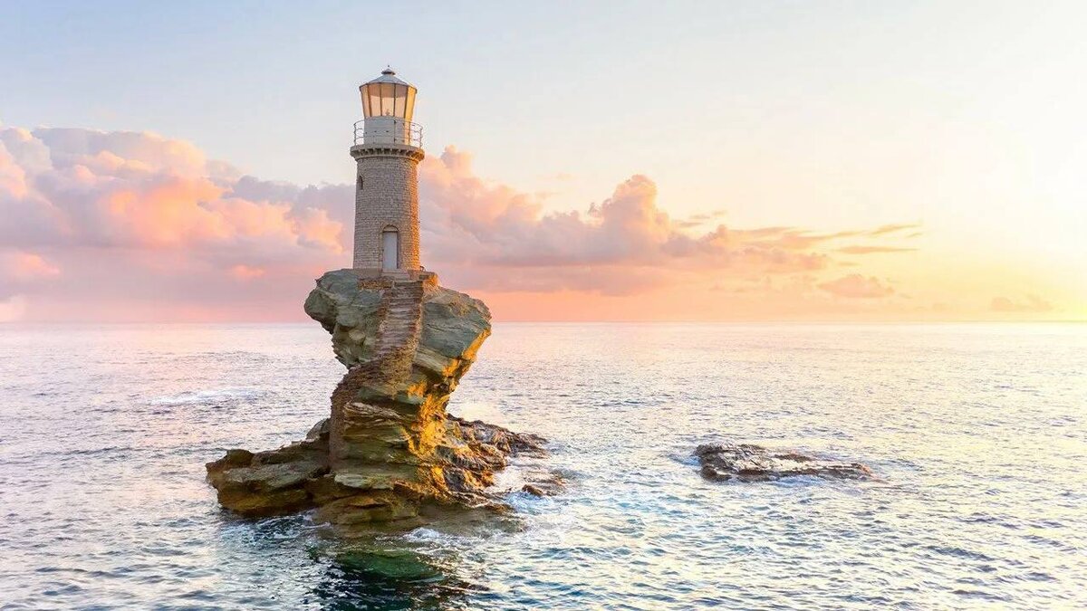На восточном побережье греческого острова Андрос в Эгейском море расположен удивительный маяк на скале. Во время Второй Мировой Войны маяк был полностью разрушен и заменен обычной башней. Однако в 90-х годах прошлого века греческий нефтяной магнат Александрос Гулендрис восстановил маяк в точном соответствии с оригинальной постройкой. Этот современный маяк стал символом памяти его умершей дочери Виоланты. Маяк на скале представляет собой фантастическую картину и является одной из главных достопримечательностей острова Андрос. Греция в объективе. Подписаться
