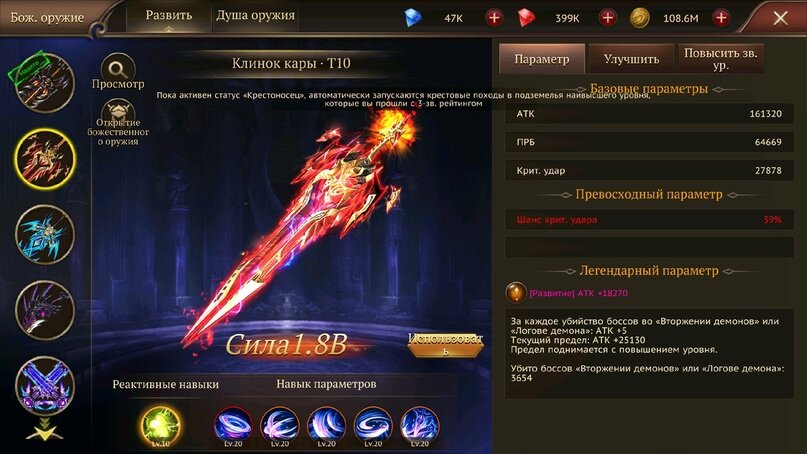 Улучшение вашего Божественного оружия принесет вам некоторые атрибуты и повысит превосходный атрибут вашего Божественного оружия. Вы также повышаете уровень его реактивного навыка, улучшая его.