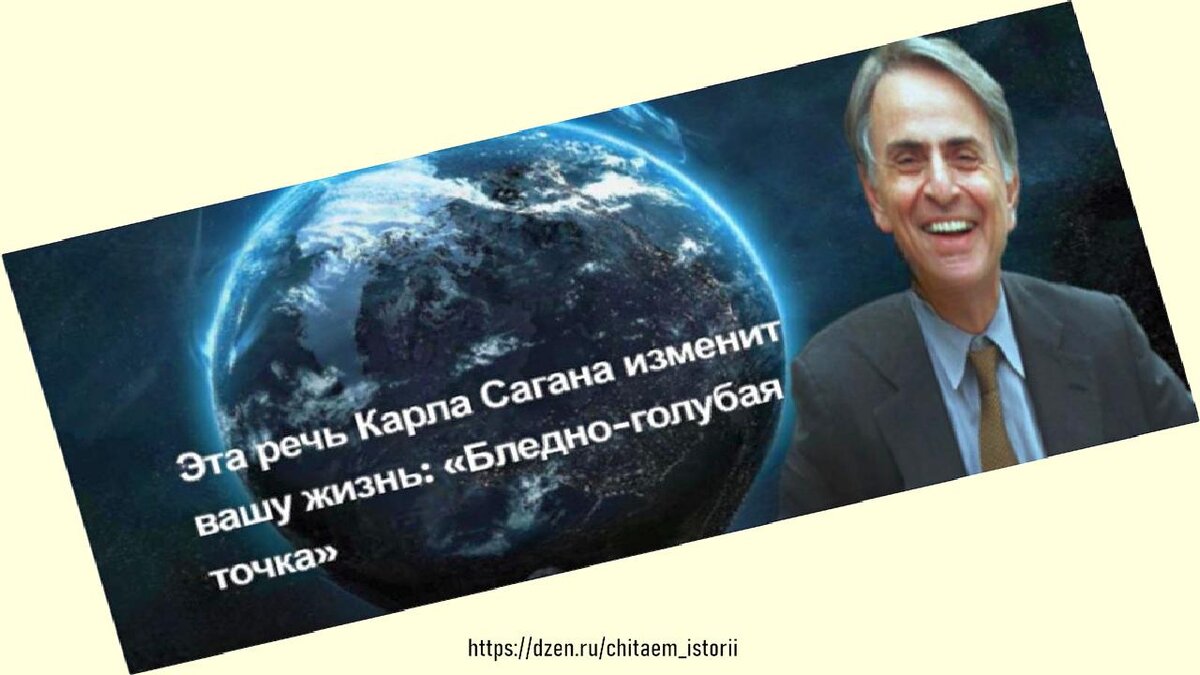 Земля выглядела как крошечное пятнышко посреди пустоты. Саган понял, что это значит, и выразил это словами. Эти слова были взяты для втор