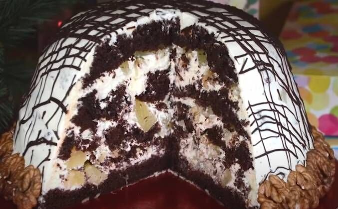 Нежнейший Торт Панчо! Классический рецепт! Просто волшебный. Торт получается настолько мягким, воздушным и пропитанным, что кусочек буквально тает во рту. Бисквит хорошо пропитывается сметанным сливочным кремом и получается максимально нежным, ананас прекрасно сочетается с этим кремом. Ингредиенты для бисквита: Яйца - 6 шт. Сахар - 150 г. Соль - 0,5 ч. л. Мука - 120 г. Какао-порошок - 30 г. Разрыхлитель - 1 ч. л. Ванильный сахар - 1 ч. л. Масло растительное без запаха - 2 ст. л. Для крема: Охлажденная сметана - 500 г. Охлажденные сливки 33% - 200 мл. Сахарная пудра - 80 г. по вкусу Крем для выравнивания торта: Охлажденные сливки 33% - 150-200 мл. Охлажденная сметана - 50-100 г. Сахарная пудра - 1 ст. л. по вкусу Для начинки: Консервированный ананас - 600 г. Орехи по желанию Для глазури: Растопленный темный шоколад - 40 г. Размягченное сливочное масло - 10 г. Противень 34х38 Миска диаметром 21 см. (объёмом 2,5 л) Разогреть духовку до 190 °С. 1 Взб