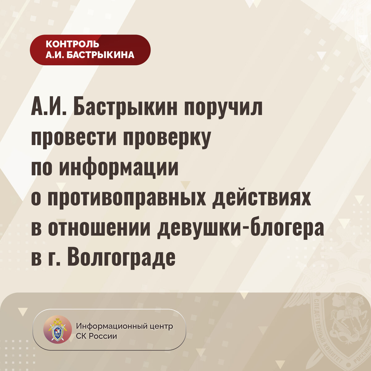 А.И. Бастрыкин поручил провести проверку по информации о противоправных действиях в отношении девушки-блогера в г. Волгограде