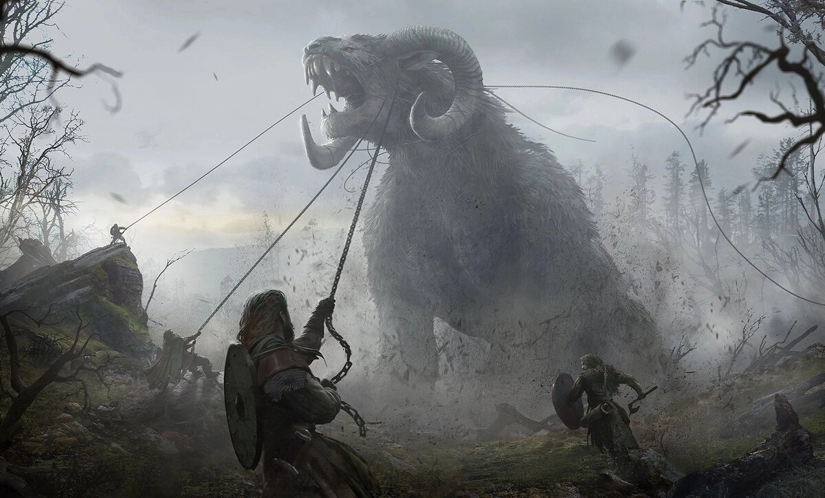 Торвин усмехался, глядя на приближающегося Корта. Уцелевшие воины стояли рядом, кто-то сжимал в руках цепи и топоры, охотники держали луки наготове, натыкав вокруг себя в землю по несколько стрел. Все в нетерпении ожидали ту тварь, что покажется из леса. Воображение уже рисовало огромное животное, но как только раздался дикий рёв, и передний ряд деревьев просто свалился под напором бегущего создания, Торвин на мгновение застыл, так же как и все верные ему воины. Из леса выскочило нечто невообразимое - помесь барана и волка. У огромного, в три, а то и в четыре роста человека создания было вытянутое мохнатое туловище, очень похожее на волчье, в пасти было полно крепких и острых зубов, но на голове росли завивающиеся рога. Тварь резко остановилась, наклонила голову и посмотрела прямо на воинов, заглянув каждому в глаза. Торвину в этот миг показалось что ему в душу заглянула сама бездна, он покрылся холодным липким потом, но сжав стальную цепь, бросился в атаку, ведя за собой соратников.