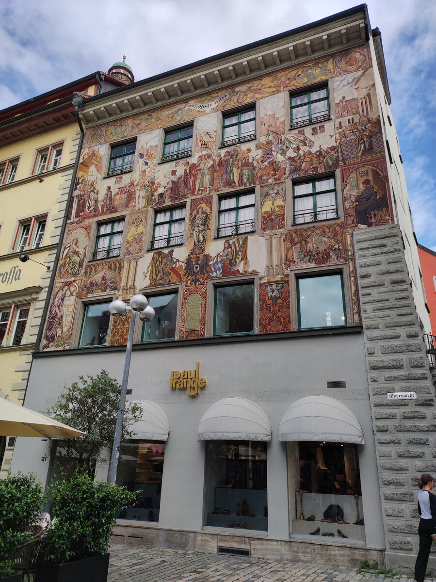Дома - свидетели исторических событий. Чем старее город, тем больше важных перипетий истории повидали они на своем веку. В исторической части города Констанца в Германии есть несколько интересных расписных средневековых домов. Они всегда привлекают внимание обычных прохожих и туристов. Один из таких - Haus zum Hohen Hafen, стоящий на площади Обермаркт (Верхний рынок). Что же повидал этот дом?