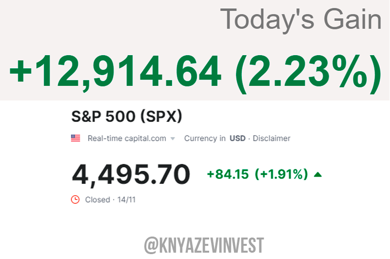 У очень многих инвесторов ВЕСЬ портфель порядка 10 000$. А здесь просто рост за 1 день!