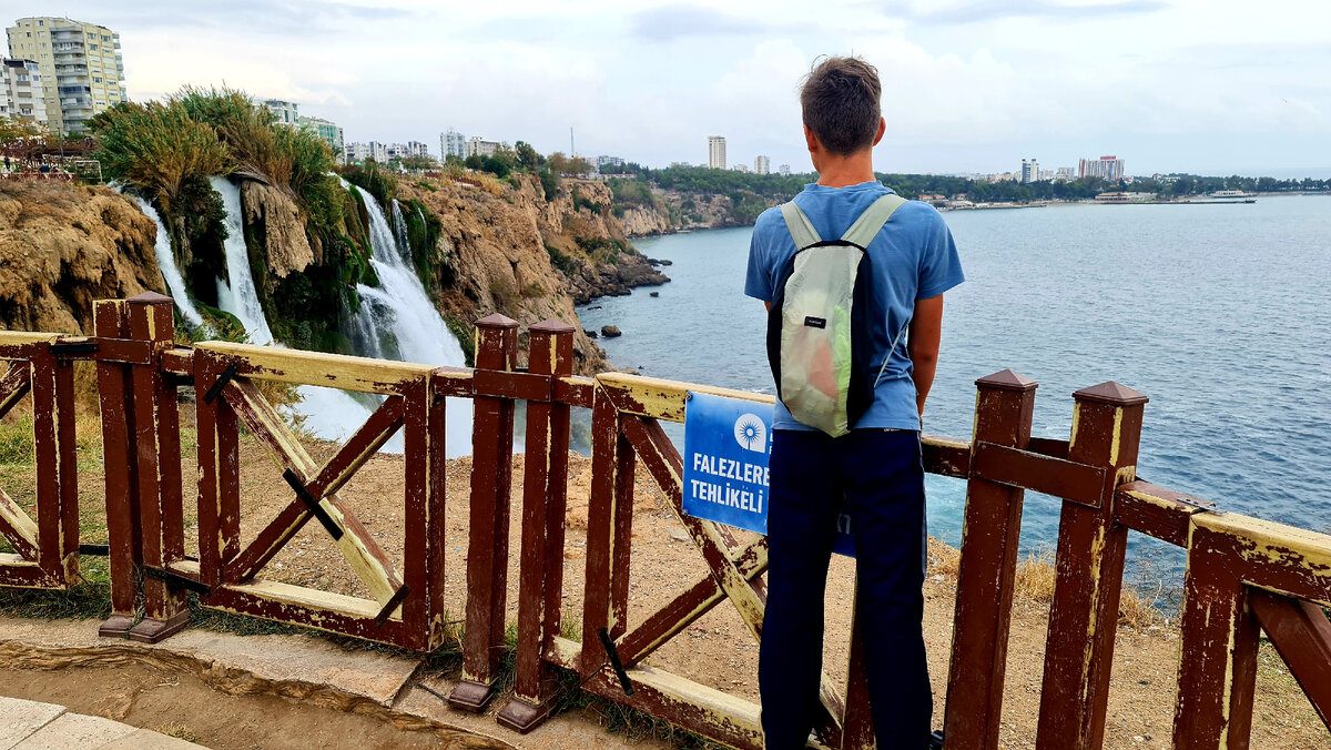 В Анталии порадовали себя хорошим отелем. Забронировали 7 city hotel с собственной ванной и завтраком. Арсений радовался "как ребёнок". Один день в туристической столице Турции нужно было провести с пользой. Поэтому сразу после завтрака выдвинулись на прогулку по побережью. Любопытно наблюдать за жизнью людей с другим менталитетом. Утром спортивные площадки в парке не пустуют. Пожилые люди делают зарядку и упражнения. Специальная площадка для собак. Заботливые турки даже оснастили её фонтанчиком для питья четвероногих. Для людей такой роскоши в парке не наблюдается. Зато сделаны многокилометровые велодорожки и пешеходные зоны. От исторического центра Анталии до нижнего водопада Дюден около 9 км. Но он стоит того, чтобы ему посвятить день. Огромный поток воды с грохотом срывается с 40 метровой высоты в море. Полагаю, что вечером он по-своему прекрасен с подсветкой. За день прошли 28 км. #Анталия #ОксанаСоло #ПешкомПоТурции